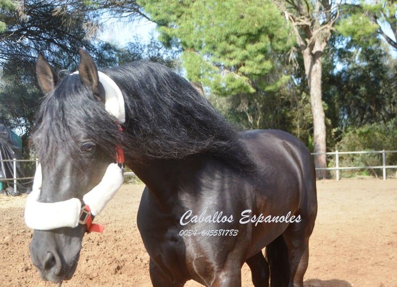 Ten czarny andaluzyjski ogier to uczta dla oczu. Ten fantastyczny czarny ogier jest wyposażony w trzy bardzo dobre podstawowe chody. Chody boczne, piaffe w ręku i hiszpański chód w ręku. Jest pracowity i nieustraszony na arenie, w terenie lub w Romerias. Koń jest sprzedawany na zlecenie. Może zostać z nami w treningu. AKU może być zorganizowane w krótkim czasie. Transport międzynarodowy.