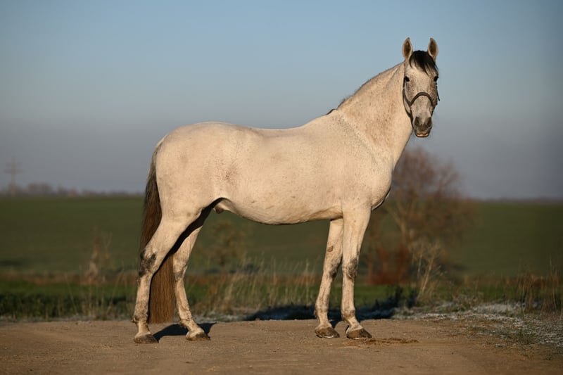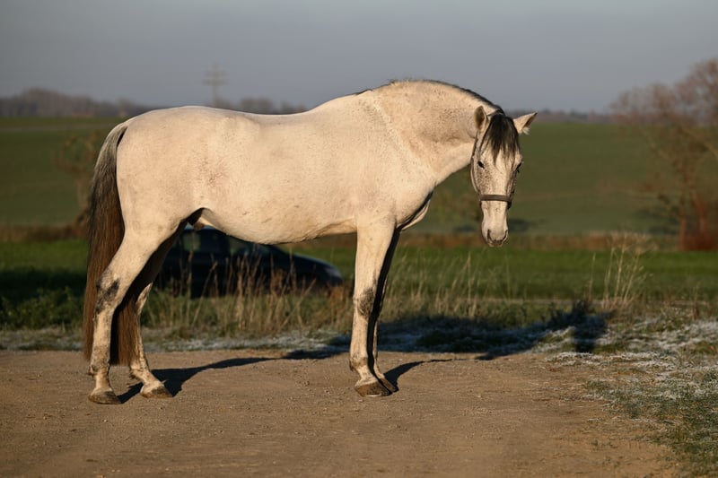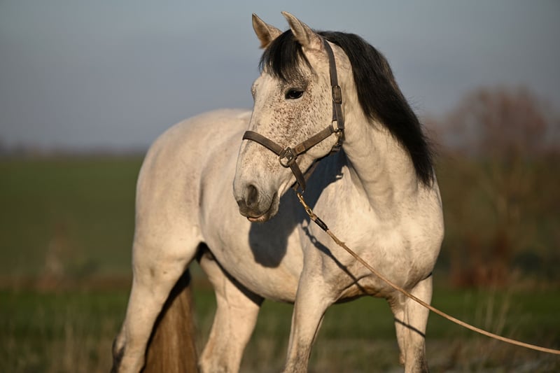 Zum Verkauf steht ein wunderschöner gekörter PRE Hengst (Abstammung auf Nachfrage) mit einem Stockmaß von 161 cm. Der 9-jährige Fliegenschimmel überzeugt nicht nur durch seine elegante und typvolle Erscheinung, sondern vor allem durch seinen außergewöhnlich guten Charakter! Er ist extrem brav im Umgang, sowie unter dem Sattel und zeigt sich stets zuverlässig und ausgeglichen. Der Hengst kennt sowohl Halle als auch Platz und ist ebenso vertraut mit Führanlage, Hänger und Transporter. Auch beim Tierarzt, Hufschmied und Osteopathen verhält er sich absolut unkompliziert. Zudem geht er mit anderen Pferden sehr gerne ins Gelände und zeigt sich auch dort nervenstark und entspannt. Sein freundliches Wesen macht ihn besonders im täglichen Handling zu einem echten Verlasspferd – er wurde bereits problemlos von meiner 7-jährigen Tochter aus der Box geholt und zum Reiten vorbereitet. Er steht aktuell in einem gemischten Stall und kann ohne Probleme auch neben Stuten geputzt und geritten werden. Sowohl Boxen- als auch Paddockhaltung sind ihm bestens bekannt. Anfang 2025 hatte er eine Entzündung des Fesselträgerursprungs. Aktuell befindet er sich wieder im Aufbautraining und steht im Profivollberitt. Seine Entwicklung ist sehr positiv. Ein ganz tolles Pferd mit viel Potenzial und bestem Charakter – ideal für Reiter, die einen unkomplizierten Pferdepartner suchen. Preis steigt mit weiterem Trainingsstand! Fürs Probereiten erheben wir eine Gebühr von 25€, wird bei Kauf verrechnet.