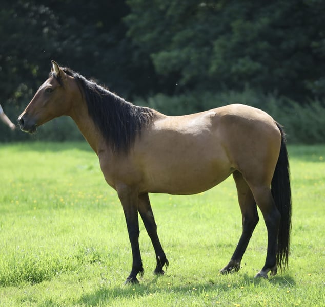 Africa is a beautiful Andalusian mare with pronounced Spanish gaits and a great build. Raised in a herd on large pastures, she has been socialized from a young age and is very people-oriented. She is backed and familiar with groundwork. Africa is absolutely well-behaved and curious in handling. She is already in Germany in a small group and shows herself to be very easygoing. For serious inquiries or more information, please feel free to get in touch!