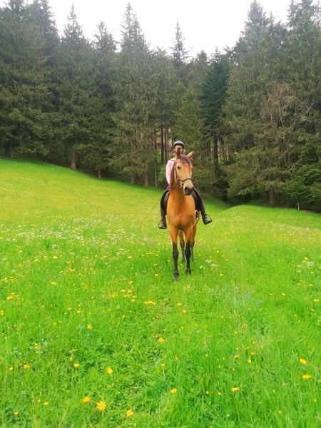 Zum Verkauf steht meine bezaubernde reinrassige PRE Stute aus dem Jahr 2015. Mit ihrem goldenen Fell und einem Stockmaß von 165 cm ist sie nicht nur ein echter Blickfang, sondern auch eine treue Begleiterin für die Freizeit. Meine Stute ist absolut freundlich, mag andere Tiere (kennt Katzen, Hunde, Hühner, Ziegen und Kühe) und ist verträglich mit allen Pferden - egal ob Ponys/Großpferde, Stuten/Wallache. Sie fügt sich absolut unkompliziert in die Herde ein und wird aufgrund ihres sozialen und aufgeweckten Wesens auch nur in Offenstallhaltung abgegeben. Da sie spaniertypisch leichtfuttrig ist, braucht sie eine regulierte Heufütterung und eingeschränkten Weidegang. Meine Stute ist ein sehr schlaues Pferd, das rasch lernt und vor allem in der klassischen Handarbeit am Kappzaum Freude und Potenzial hat. Sie beherrscht die Seitengänge und der spanische Schritt ist ihre Lieblingslektion. Sie reagiert ganz fein auf die Hilfen, denkt mit und möchte alles richtig machen. Geritten wird meine Stute gebisslos und am liebsten im Gelände. Hierbei ist sie ein Traum - auch alleine, da sie überhaupt nicht an anderen Pferden klebt. Sie ist in allen Gangarten stets gut zu regulieren und hat ein angenehmes Go mit sehr bequemen Gängen. Allerdings ist sie (noch) nicht ganz straßensicher. Autos sind ok, aber bei LKWs, Traktoren o.ä. hat sie Angst. Da braucht es entweder genug Platz zum Ausweichen oder ein sicheres Begleitpferd, hinter dem sie sich verstecken kann. Meine Stute ist gut erzogen, ist aber auch sehr feinfühlig und sensibel - deshalb ist sie kein Pferd für Anfänger oder ungeduldige/grobe Menschen. Ausserdem ist sie kein Gewichtsträger. Unarten wie Bocken oder Steigen gibt es bei ihr nicht. Ich reite sie gerne ohne Sattel, wobei sie wirklich superbrav ist und immer gut auf ihren Menschen aufpasst. Meine Stute hat ein paar gesundheitliche Themen, weshalb sie -trotz ihres Potenzials und schönen Gänge- ausschließlich als Freizeitpferd abgegeben wird. Mehr dazu gerne persönlich. Kein Notverkauf und nur mit Vorkaufsrecht/Platzkontrolle. Hochwertiges Zubehör kann miterworben werden. Ich würde mir einen Platz als Familienmitglied für meine Stute wünschen, wo sie so geliebt und umsorgt wird, wie von mir! Im Vordergrund sollte nicht das Reiten, sondern die Beziehung zum Pferd und ein gymnastizierendes, gesundheitsförderndes Arbeiten stehen. Ich freue mich auf nette, ernsthaft interessierte Anfragen.