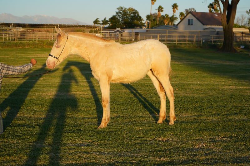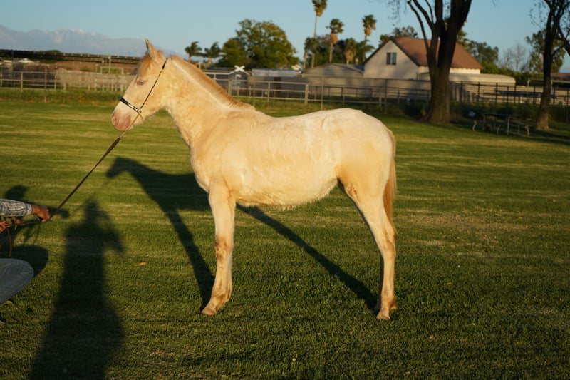 Very calm and intelligent Perlino filly. She is halter trained and has strong groundwork abilities. Barbie is healthy and has a bright future ahead of her. Please contact us for more information.