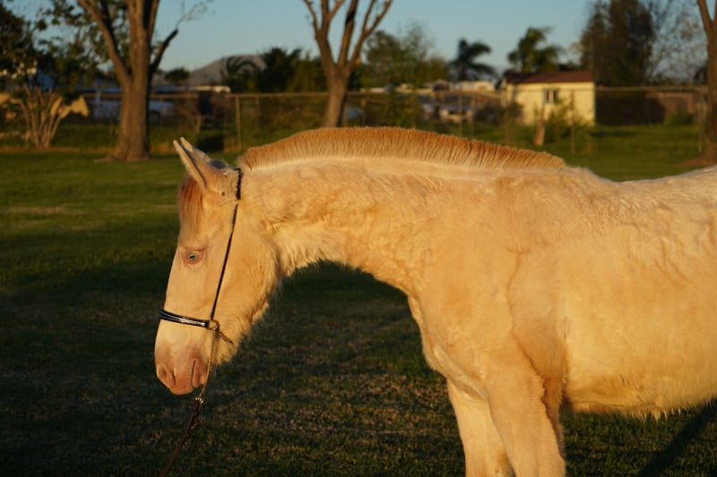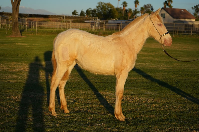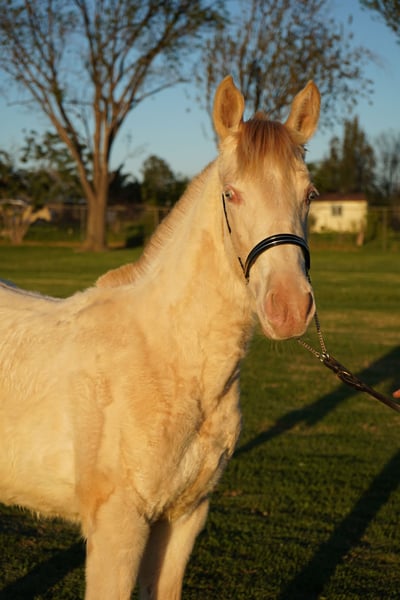 Very calm and intelligent Perlino filly. She is halter trained and has strong groundwork abilities. Barbie is healthy and has a bright future ahead of her. Please contact us for more information.