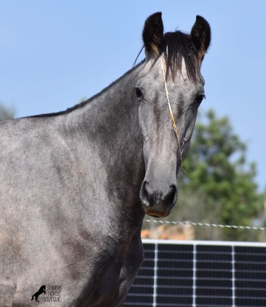 This PRE mare (Andalusian with ANCCE breed certificate), born in 05/2023, is already a magical, elegant young horse. Her pedigree is truly sensational, because on her sire's side she can be traced back to the exceptional stallion FER TEMPRANILLO, who has strongly influenced the PRE of today. On her dam's side we find the unique JUDIO VII, as well as Mejorante and Recomendado stallions! She already has great movement with lots of impulsion, despite the stony ground. But thanks to the ground and her robust attitude, she has very clear legs and good hoof quality. She lives outside 24 hours a day with a friend and is therefore well hardened in all weather conditions (it gets cold and frosty even in winter!). Her expected final height is around 160cm and she will later be open to many disciplines thanks to her good movement and agility. There is the possibility to leave her longer in Mallorca for breeding, but she would be ready to leave and come to you :) Videos and pedigree on request. Her location is Mallorca. I would be happy to organize a foal AKU on site, transport or even her trip, should you come to see her in person. Details on my site or in conversation. Saludos from Spain