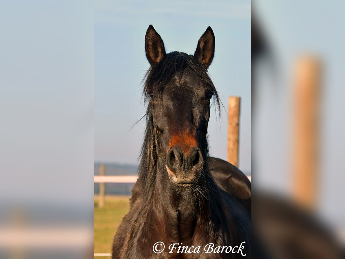 Rasse: Andalusier Name: Africana Geschlecht: Stute Stockmaß: 156 cm Alter: 17.04.2022 Farbe: Schwarzbraun Preis: 9500 € Vater: o. P. Mutter: o. P. Africana, unsere sanfte, sehr verschmuste Maus mit 1a Charakter. Es gibt Sie einfach, diese Jungpferde welche eine unglaublich hohe Grundcoolness mit sich bringen. Africana gehört auf jeden Fall dazu. Sie wird erst im April 4 Jahre, benimmt sich im Umgang aber deutlich ruhiger und gelassener als viele ältere Pferde. Dazu liebt Sie Kinder. Und diese Sie. Es ist total auffällig das alle Kinder bei Ihr stehen bleiben und mit ihr schmuse wollen oder Africana Putzen oder Führen möchten. Reiterlich ist Africana in den GGA geritten, sowohl Viereck als auch im Gelände. Natürlich ist sie mit ihrem Alter noch am Anfang Ihrer Ausbildung. Trotzdem vermittelt Sie bereits ein tolles Reitgefühl und möchte es Ihrem Reiter immer recht machen. Sie wurde auch schon von Kindern und Jugendlichen geritten und verzeiht auch durchaus kleine Reiterfehler. Wir können uns gut vorstellen dass sie bei weiter guter Ausbildung auch von einem schwächeren Reiter mitgeritten werden kann. Im Gelände ist Sie aufmerksam und mutig. So geht Sie auch vorweg, wenn andere Pferde es zu gruselig finden (und schleppt die älteren mal eben so ab) Sie steht bei uns zusammen mit ihrer Freundin Señorita draußen und zeigt sich verträglich. Eine absolut tolle Lady, für jeden der ein Pferd mit einem grundsolidem Charakter sucht. Bei Africana sind schon gute Grundlagen gelegt, sie aber noch total offen für neues und kann dementsprechend weiter gefördert werden. Kontakt: Finca Barock, Tel. 0173-696 31 81, 56291 Wiebelsheim