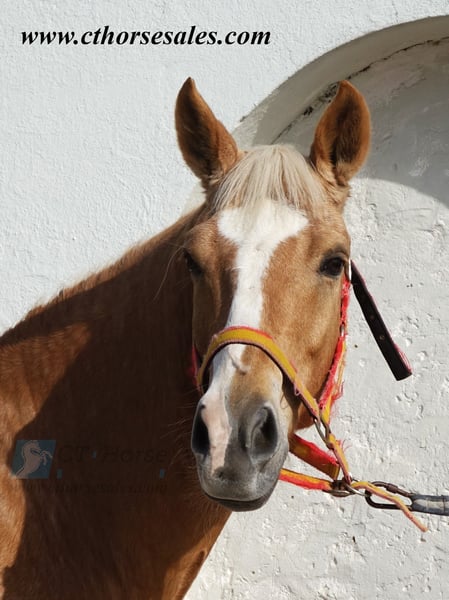 Curro, castrone spagnolo nato nel 2015 e ap. 158 cm. Curro è un vero cavallo da favola con la sua espressione simpatica, il tipo elegante e il bellissimo colore dorato. È fantastico da cavalcare con una bella energia, grande mentalità e voglia di lavorare. È un cavallo che vuole sempre rendere felice il suo cavaliere e dice sì a tutto ciò che si vuole fare con lui. Curro è anche super confortevole da sedersi! Ha un buon addestramento e fa tutti gli esercizi laterali e i cambi al volo. Ha anche iniziato a giocare con le piroette del canter. Curro ha gareggiato con una giovane ragazza e si comporta sempre bene durante le gare. È facile da caricare e da portare in viaggio. È un sogno da gestire. È anche abituato a fare hacking ed è sicuro in diversi ambienti, va avanti ovunque. Curro si trova nel sud della Spagna e vi aiutiamo in tutte le fasi del processo di acquisto. Per saperne di più: www.cthorsesales.com Contatto: info@cthorsesales.com