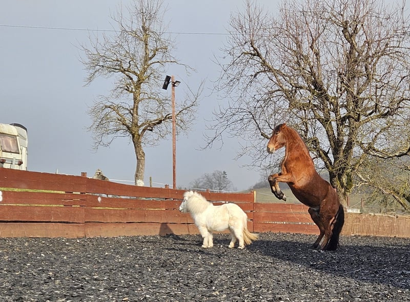 Verkaufe eleganten Andalusier-Wallach, geb. 2015, mit einem Stockmaß von etwa 160 cm. Dieser braune Dressurwallach überzeugt durch seine elegante Erscheinung und sein angenehmes Temperament. Er hat besonders weiche Gänge, man spürt garnicht das er sich bewegt :). Er ist sehr gut ausgebildet und zeigt sich in der Dressur stets motiviert und zuverlässig. Der Wallach verfügt über eine solide Grundausbildung inklusive Piaffe, alle Seitengänge und sehr gut in der working equitation. Aufgrund seines freundlichen Wesens ist er sowohl für ambitionierte Freizeitreiter als auch für den Turnierreiter geeignet. Er geht brav ins Gelände und springt auch sehr gerne. Ein vielseitiger Partner für alle, die Wert auf Qualität und Charakter legen. Bei Interesse freue ich mich auf Ihre Kontaktaufnahme.