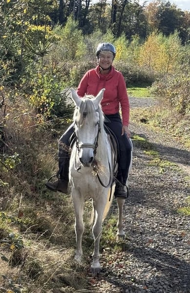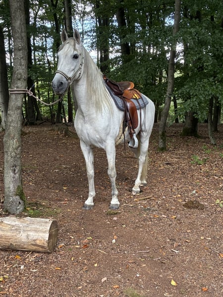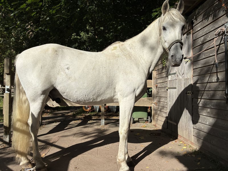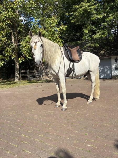 Granadiño, known as Don, is a stunning 10-year-old Cruzado gelding standing approximately 1.58 meters. He has three good basic gaits and a temperament of gold. When leading, grooming, and lunging, he is very people-oriented, calm, and gentle. Under saddle, whether in the riding hall, on the arena, or during group rides in the field, he proves to be fearless and very well-behaved. He is occasionally ridden by my grandson, and even then, he shows great effort and obedience. This well-trained, baroque-style gelding is exceptionally comfortable in the saddle, with a beautiful, soft trot and canter, and he always brings a smile to his rider’s face during training. Don lives in an open stable with turnout on pasture and is very compatible with other horses and ponies. Of course, daily turnout on the paddock or pasture is a must. He is regularly presented to the farrier and is barefoot. He has been recently dewormed, vaccinated, and has seen the veterinarian for dental care and osteopathic treatment. A clinical or radiological pre-purchase examination can be arranged with your or our veterinarian. Has this sparked your interest? I would be happy to send you additional pictures and riding videos. Please contact me by message or phone for a personal conversation: 01603762656. I look forward to hearing from you!