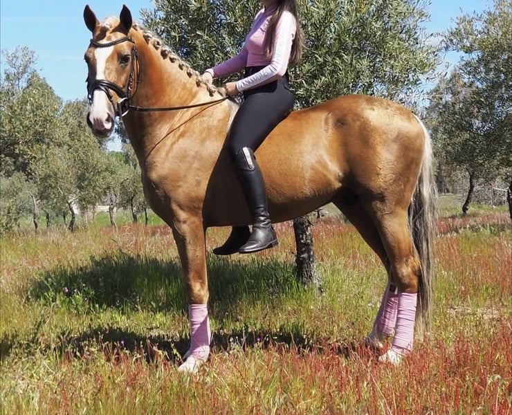 This wonderful gelding impresses not only with his exceptional appearance but also with his lovely temperament. As a Palomino with a silver mane, he is one of the exceptional individuals among Andalusians. He is very well-trained and friendly in handling, making him easy for children to manage as well. He is affectionate, cuddly, and very attached to his people. Also, in everyday situations, he is completely straightforward. He reliably rides out in the field (even a 12-year-old can go out with him) and already presents a good figure in the dressage arena, although he is only being trained age-appropriately. Due to his character, he would undoubtedly make a wonderful therapy pony after proper training. He is also suitable for children, BUT only with the support of an experienced rider, because even if he is very well-behaved, he is still only 5 years old — this should not be forgotten. He has not been ridden for a few weeks since his owner moved away, and we are now handling the sale. Currently, he is barefoot but is also familiar with shoes, as we have very rough gravel paths. A great riding pony that leaves nothing to be desired... well, almost... Now for the big BUT: This dream pony was originally supposed to cost €10,000. He quickly found a potential buyer, and during the clinical examination everything was perfect, but unfortunately, X-rays revealed two small bone chips at the back (smaller than a grain of rice). Because of this finding, and since he should not be used in sport, the price has now been halved. We do not have the X-ray images, as we did not want to cover the €600 cost ourselves. If someone is interested and wants to see the report in black and white, they are welcome to arrange an X-ray. Please only contact us if you are genuinely interested.