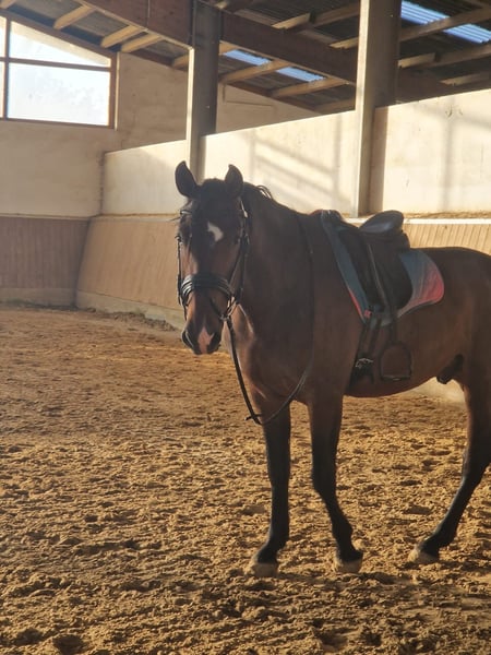 Schweren Herzens muss ich mich von meinem Andalusierwallach trennen, da ich ihm zeitlich und gesundheitlich nicht gerecht werden kann. Brasil ist ein wunderschöner 5-jähriger Spanier mit tollem Exterieur und tollem Charakter. Derzeit hat er ein Stockmaß von ca. 1,60m. Beim Reiten ist er brav und lernt neue Lektionen sehr schnell. Er ist allerdings kein Selbstläufer! Aufgrund seines kleinen Dickkopfes, muss der Reiter sich durchsetzen können. Das ruhige Stehen bleiben beim Aufsteigen sind wir fleißig am üben. Er geht alleine, als auch in der Gruppe brav ins Gelände und fühlt sich dort am Wohlsten. Ebenfalls kennt er Longe, Doppellonge und leichte Stangenarbeit. Im Umgang ist er ein absoluter Schatz, versucht auch da alles richtig zu machen. Er kennt weder treten, noch beißen. Im Gegenteil, er ist total verschmust und sucht auch immer wieder den Kontakt zu seiner Bezugsperson. Auch von Kindern lässt er sich putzen oder führen. Er war noch nie krank und läuft derzeit Barhuf. Wer also ein charmantes und unverbrauchtes Pferd zum selbst ausbilden sucht, ist bei Brasil genau richtig. Brasil ist in Deutschland geboren, ist im Herdenverband aufgewachsen und wurde 2,5-jährig gelegt. In der Herde ist er rangniedrig und geht Konflikten eher aus dem Weg. Das Fahren im Anhänger ist ebenfalls absolut problemlos. Auf Wunsch kann der passende Sattel und Zubehör mit abgegeben werden.