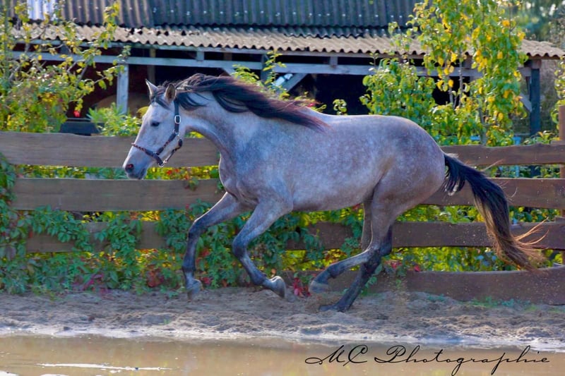 **For Sale: Andalusian gelding - Perfect leisure partner** For sale is a beautiful Andalusian gelding, born in 2020. This impressive roan gelding not only impresses with its striking color, but also with its friendly nature and versatility. With a height of 160 cm, he is the ideal size for a leisure partner who cuts a fine figure both in the field and on the arena. He is well balanced and is always willing and motivated to learn. Ridden according to age. This gelding is ideal for leisure riders. If you are looking for a loyal partner for your leisure activities who will give you a lot of pleasure with his charming character, then this Andalusian gelding is just right for you. If you are interested or have any further questions, please do not hesitate to contact me. Viewings and test rides are possible by arrangement.