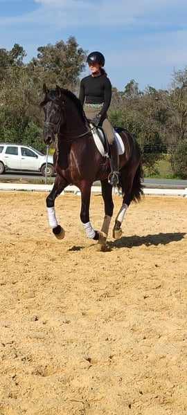 Lovely 16.3hh 5 year old PRE purebred stallion. Has a super temperament, a very kind eye, easy to do anything with. Has 3 established paces on the flatwork and is now training to go up the levels, he is very willing. Will make a lovely dressage prospect. Has no stallion behaviour, is used to being in a yard woth other horses and in the arena woth other horses. Everything available to view and try if you can travel to the yard. Potential buyers need to WhatsApp us a video of their riding ability through to 00353879297498 a nd we can assess suitability. Located in Spain. Worldwide shipping available please contact us for a quote.