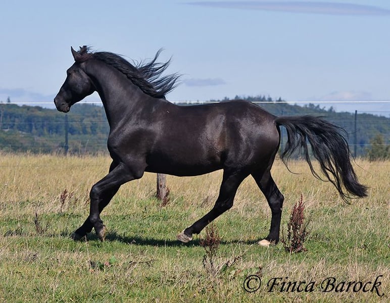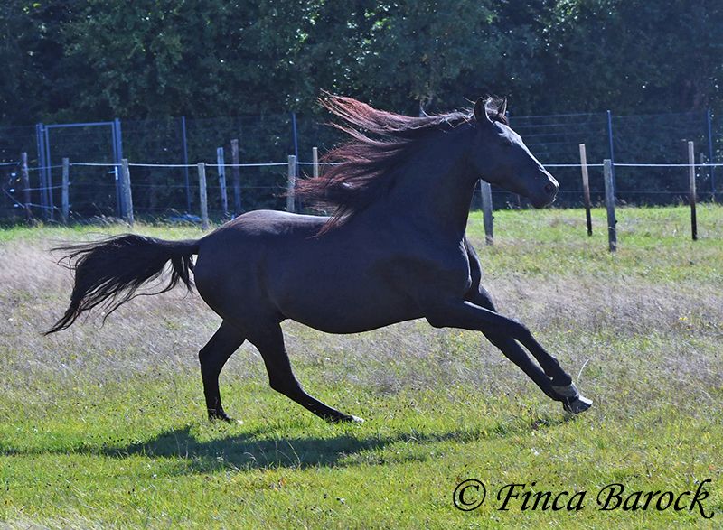Breed: Andalusian Name: Silencio Gender: Gelding Height: 158 cm Date of Birth: 12.10.2019 Color: Black Price: €11,999 Sire: n/a Dam: n/a Here come the Men In Black! Silencio is a stylish, jet-black boy with a friendly character. He also has a super beautiful long mane, which makes him a total eye-catcher. Silencio has been started under saddle in the basic gaits. He is more familiar with trail riding than working in the arena. He is currently being further trained with us. He shows a willingness to work, is easy to ride on the bit, and has comfortable movements. He has also already been introduced to pole work and cavaletti work. In jumping, he shows a lot of joy and could definitely be further developed in this area. Silencio really enjoys trail riding and shows great confidence when out alone. He may take a moment to investigate the unknown, but he is easily convinced to move past new things. In handling, Silencio is a bit reserved; he observes new people cautiously at first. However, over time, curiosity prevails, and he comes to see who is lingering around his box. Once he knows his person, he is very affectionate. Overall, he is playful, sometimes rearranging the blankets in front of his box, carrying cones around the arena while free running, and is thrilled when someone watches him. Just living by the motto – am I doing well? <3 A great, unspoiled boy who has already received a solid foundation and is waiting to experience more adventures. Contact: Finca Barock, Tel. 0173-696 31 81, 56291 Wiebelsheim