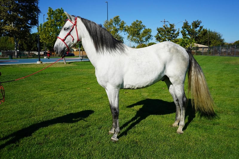 White Andalusian Gelding Available for Sale White Andalusian gelding, born in 2018, standing at a commanding 16 hands. Known for his smooth transitions and noble presence, he is an ideal partner for trail riding and outdoor adventures. Well-trained and calm, he enjoys exploring new terrains and is suitable for riders seeking a reliable and handsome companion. Zafiro is eligible for IALHA. Don't miss the opportunity to own this exceptional horse. Contact us today to learn more! Visit https://www.whitestallionhay.com/horses to view more horses.