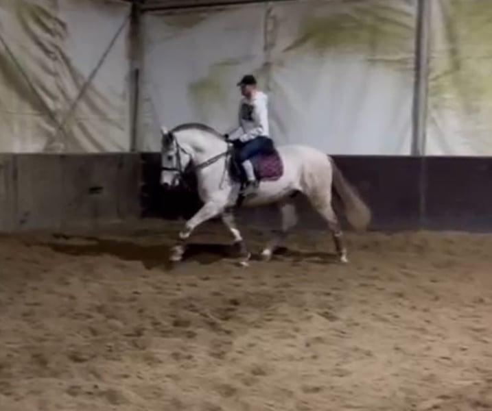 Vends ici un magnifique hongre Andalou (mix avec un cheval de sport) !! Il a 8 ans, mesure 1,65 m et est monté avec beaucoup de finesse, tout comme il a été conduit en voiture d'attelage. Il est doux à monter et s’amuse partout : en manège, en concours ou en extérieur. Il convient également aux débutants ! Il travaille en dressage jusqu’à un niveau excellent A, débutant en galop extérieur, et saute aussi agréablement de petits obstacles (jusqu’à 1,25 m). Nous le travaillons de manière très polyvalente, et il montre toujours beaucoup de plaisir. La mise en main au sol lui plaît aussi. :-) Il reste calme lors du pansage et donne volontiers ses 4 pieds. Il connaît le paddock comme la box et est sociable. Son comportement est très facile et simple à gérer. :-) Il convient également à des cavaliers plus grands grâce à sa taille agréable. Il peut être visité à tout moment. Il possède bien sûr un passeport, est en bonne santé, vermifugé, et n’a ni fourbure ni dermite estivale (sa crinière sportive a simplement été coupée). Plus d’informations, photos et vidéos sur demande, directement via WhatsApp.
