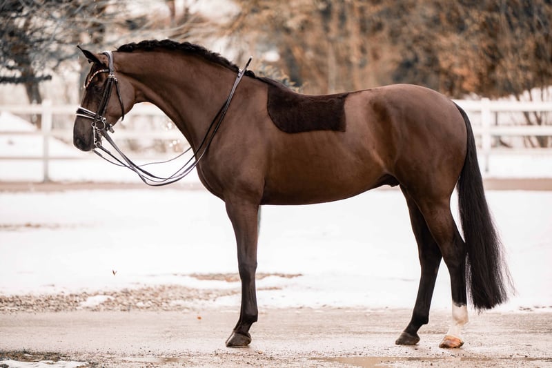 Dear Interested Parties, Please send me a WhatsApp message to arrange an appointment for a trial ride. For further questions, I am available during the day via WhatsApp, and you can reach me best by phone between 4 p.m. and 7 p.m. I look forward to hearing from you. www.angelina-devittorio.de ⭐️Dracoon Hill⭐️ Age: 7 years (born 2016) Height: approximately 16.1 hh Pedigree: Devonport x Astrix Training level: Placed in dressage horse class M Pre-purchase exam: Good X-rays available. Since the gelding occasionally kopps (intermittent head-shaking), he is offered at a significantly reduced price. No issues related to this. He is priced well below the upper range. For sale is a beautiful seven-year-old son of Devonport, boasting three outstanding gaits and excellent training. This talented gelding impresses not only with his very good basic quality but also through numerous successes in sport. From a young age, he achieved many placings and wins in young horse competitions. At four years old, he placed fifth at the regional championship, received individual scores up to 9.0 in dressage tests, and was consistently placed up to dressage horse class M last season. His movement is characterized by an elastic, lively trot, a very good, balanced canter, and an outstanding, rhythmical walk. Beyond his sporting qualities, he captivates with his exceptional character: clear-headed, absolutely honest, and with a heart of gold. He is very easy to ride, sits "like a sofa," and brings joy every day. Whether hacking out, going for a bath, or daily handling – he always shows himself to be well-behaved, uncomplicated, and people-oriented. Thanks to his rideability and balanced nature, he is ideally suited for riders transitioning from other disciplines, juniors, or as a high-quality family horse with sporting potential. A dream horse in every respect. ⚜️ Phone: 0171-3438949 ⚜️ Email: a.devittorio@web.de ⚜️ https://www.ehorses.de/angelinadevittorio ⚜️ Facebook and Instagram: Angelina De Vittorio