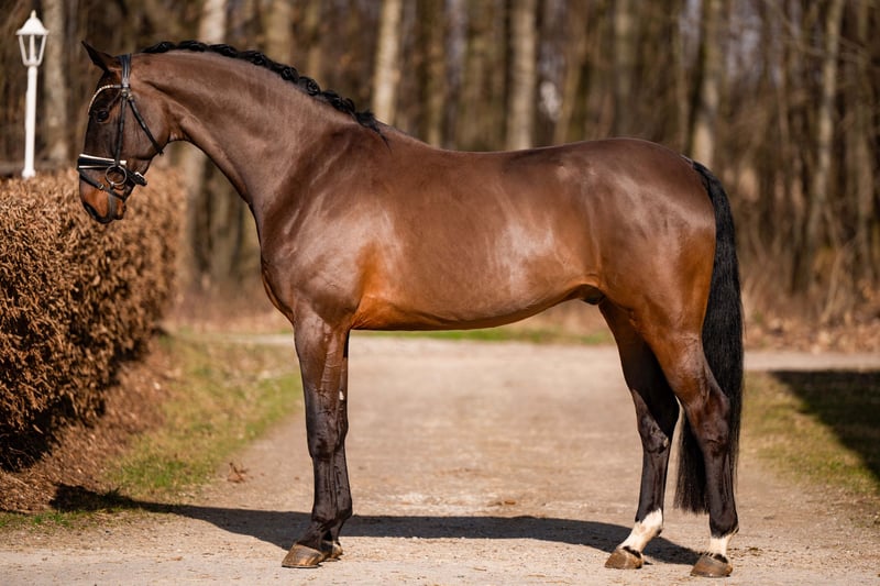 His outstanding canter features a uphill, springing mechanics, while his trot is elastic, very rhythmical, and expressive. In the walk, he impresses with clarity of rhythm and good ground cover. Due to lack of time, this wonderful gelding has not yet been extensively trained and is currently at basic riding horse level. Here is a highly talented young horse available at a very attractive price.