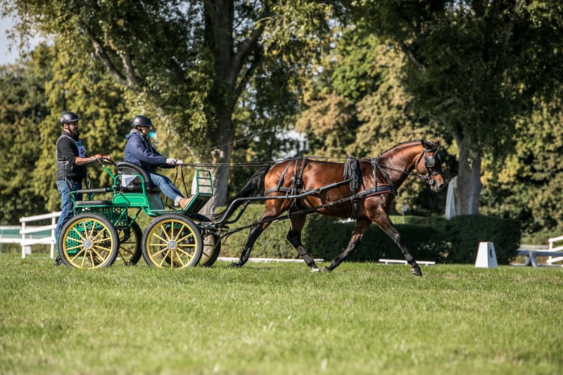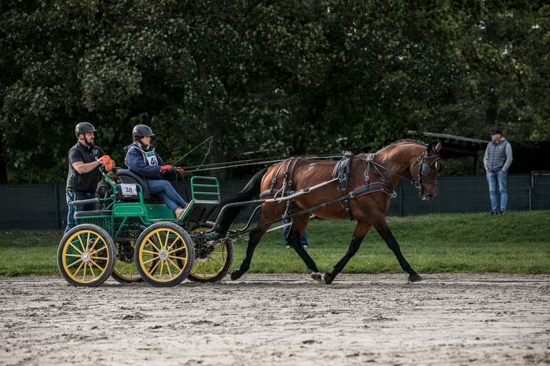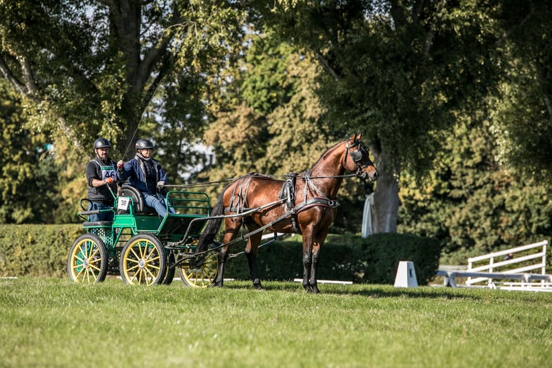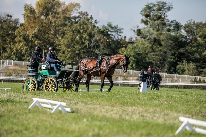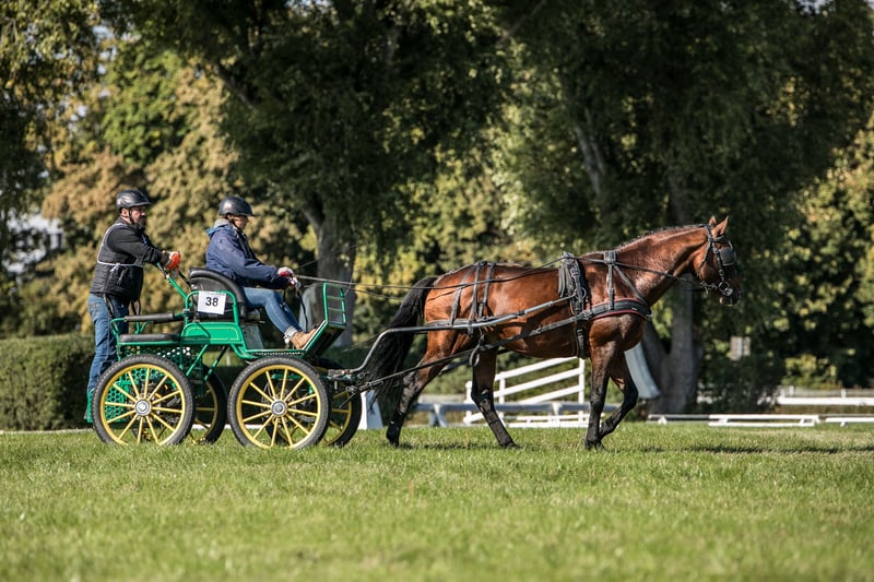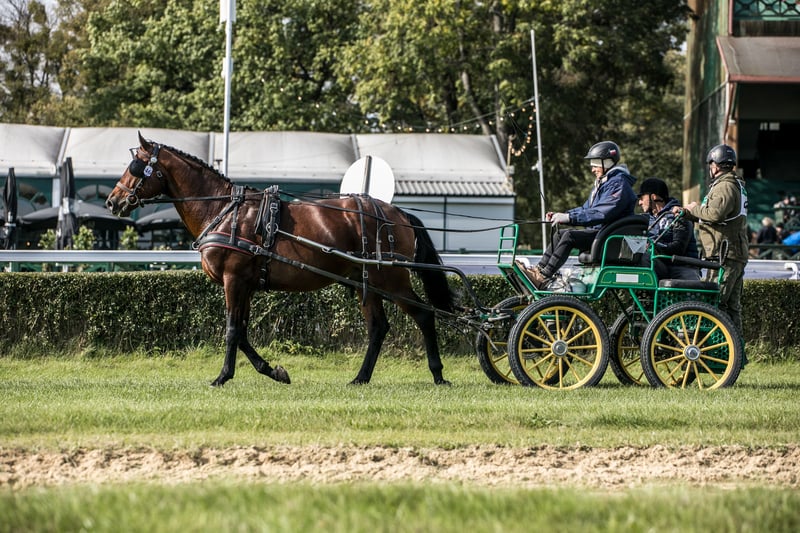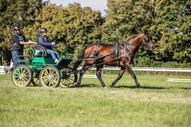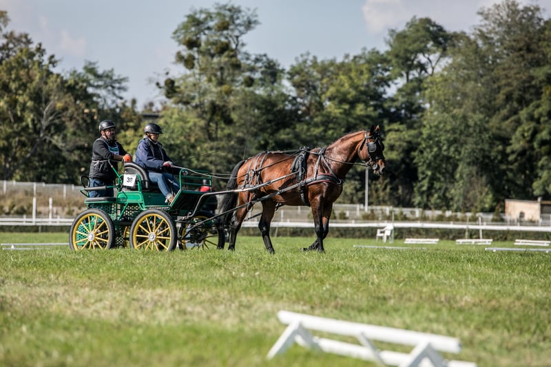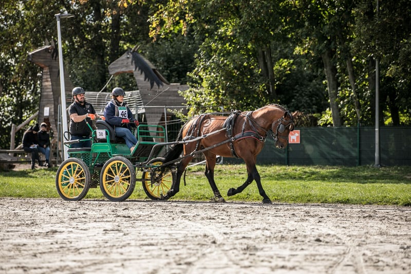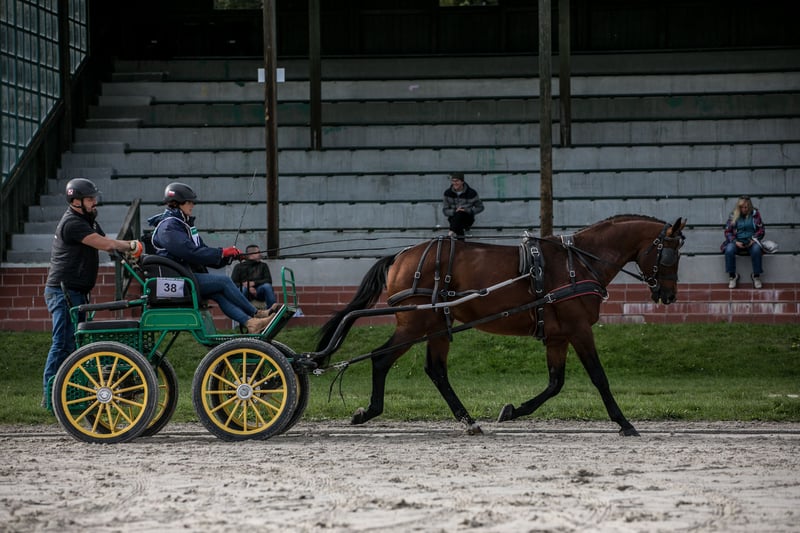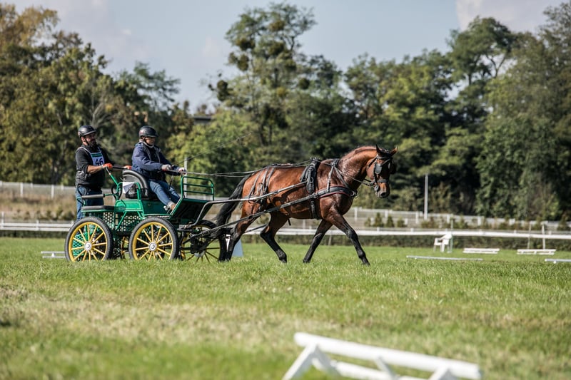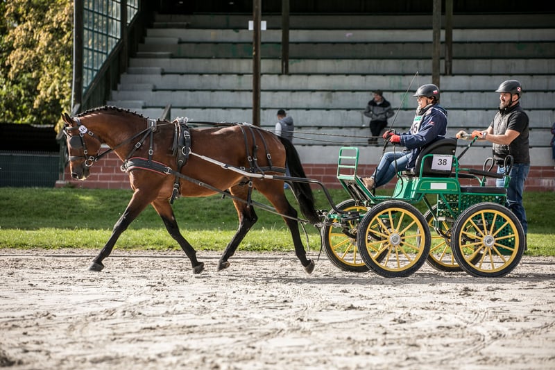 Junger Hengst Dan-Ber, sired by Brand Magic out of Draga by Hayati, of Małopolska breed, born on June 16, 2021, with a bay coat, measurements: 166-195-21 cm. Conformation score: 79 points. Dan-Ber is a young noble stallion with a good type (received 7.5 points for type and 7.5 for build in the linear assessment), exhibiting a well-structured and correct conformation (special attention should be paid to his large, correct hooves, for which he scored 8 points during the conformation evaluation). He is endowed with good, elastic movement in all three basic gaits and shows very good technique and strength in jumping, with consistent performance in the ring. Dan-Ber is a horse with 60% XX blood, possessing a very balanced and steady character. He is a strong horse with good movement, especially noted for his excellent walk and trot. In harness work, he is very rideable and responsive to aids. Dan-Ber is one of three licensed sons of Brand Magic (the others being Maximus AA and Elan AA, with temporary licenses), and he is the first with a lifetime license. His sire: Brand Magic is a tall (170-193-20.5 cm), very handsome modern sport-type stallion, with expressive, elastic movement in all three gaits, a very good character, and a strong willingness to cooperate with humans. He was sold to Germany, where he received a Westphalian license and is currently in dressage and eventing training. The sire of Brand Magic: Mighty Magic (Mythens xx – Heraldik xx) was Vice World Champion Young Event Horses (CIC**) at age 6 and World Champion at age 7, competing in international CIC** events. He was Vice-Champion of Germany for 5-year-old event horses and is the dam sire of Berra (by Divisor xx), a brave and outstanding racehorse, winner of the Oaks in 2006, with two racing seasons and an excellent career: 5 wins, 1 second, 3 thirds, and 3 fourths, competing in both flat and hurdle races. The dam of Dan-Ber: mare Draga by Hayati, out of Donna by Hebron, is the only mare by Hayati, who was sold to France and now participates in show jumping competitions. She also participated in the 2016 Livestock Exhibition in Sitno, placing 5th. Achievements of Stallion Dan-Ber: - 6th place at the Carriage Driving Noble Breed Stallions Field Test in Wrocław, October 2–4, 2025. Scores: External driver’s assessment – 7.20; quadruped test – 6.20; trot speed test – 10.00; endurance test – 10.00; walk speed test – 5.00; temperament and character – 7.50; suitability for harness work – 6.50. Final score: 7.30 and lifetime breeding license. - March 6, 2025: Lublin Preliminary Selection of Noble Breed Stallions before qualification at SK Racot at the Equestrian Arena in Lublin. Dan-Ber was positively evaluated in jumping and free movement by the LZHK committee and preliminarily qualified for the PPO at Racot. - 27th National Youth Małopolska Breed Horse Championship, Białka, June 15–16, 2024. Dan-Ber placed 4th in the three-year-old stallion class with an overall score of 77.74 points. Individual scores: type – 8.10; head, neck, shoulders – 8.16; legs and hooves – 7.76; free gallop – 7.63; free trot – 7.76; free jumping – 7.56; walk in hand – 7.56. - 26th National Youth Małopolska Breed Horse Championship, Białka, June 10–11, 2023. Dan-Ber placed 7th in the two-year-old stallion class with an overall score of 74.27 points. Scores: type – 8.16; head, neck, shoulders – 7.70; legs and hooves – 7.06; free gallop – 7.60; free trot – 7.36; free jumping – 7.20; walk in hand – 6.67. - 25th National Youth Małopolska Breed Horse Championship, Białka, June 11–12, 2022. Dan-Ber placed 10th out of 20 in the yearling stallion class with an overall score of 77.84 points. Individual scores: type – 8.50; head, neck, shoulders – 7.83; legs and hooves – 8.17; free gallop – 7.50; free trot – 7.75; walk in hand – 7.00.