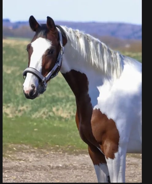 An elegant Anglo-Arabian mare, born in 2020, with an impressive Overo coat in a variety of colors. The horse has a height at the withers of 16.3 hands and impresses with her appealing appearance as well as her versatile potential. She is a promising dressage horse, distinguished by her sensitive nature and solid basic training. The mare is well-behaved, very well ridden, attentive, and shows great potential for advanced dressage. A true gem for ambitious riders who value quality and character. Farrier and loading trainable, four times shod, fully vaccinated and dewormed. If you are looking for something special, this mare is the right choice in both conformation and exterior. She can be ridden alone in the field and is manageable even for less experienced riders. Also suitable as a ladies’ or children's horse. AKU and X-ray available for an additional fee. More photos and riding videos gladly available upon request. If interested, I look forward to hearing from you.