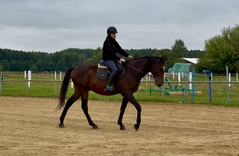 For sale 3, 5 yo beautiful gelding by Emark - amazing black dressage polish stallion, compete in high level. (last picture) Also many more best Anglo Arabian horses in the pedigree, suitable for dressage, eventing or endurance . Grandsire The Anglo Arab stallion All That Jazz was imported to Biddesden from Victoria in Australia as a colt. His sire is the Arab stallion SS City Lights who was bred in the USA and nearly 16 hands. His dam is Belingo, an Australian Thoroughbred by Saulingo. Jazz was always a tall colt with great scope to his stride. He has the softest and springiest of canters as all who have been lucky enough to ride him will attest. He was taken through the ranks to advanced level in British Eventing by William Fox-Pitt and went hunting for a season with the South and West Wilts. His foals have been successful in the show ring and have made a promising start in eventing, with their big strides and elegant steady head positions. Also australian, both arabian and thouroughbred horses are well known and appreciated for their hardness and durability and have achieved many successes in international endurance ! Deeper in his pedigree we find top egyptian bloodlines such as Hadban Enzahi (Mazan), Gharib garis and some top polish bloodlines such as Europejczyk and Palas.. Empire AA is Of exceptional beauty and charizma, long-legged and well built, with elastic and extensive movement. Long neck, beautiful subtle head. Very good topline. He is now 166 cm high at 3,5 yo cm. Lovely, chocolate color ! Born and raised on big meadows, pastured every day with a group of youngsters. Candidate for endurance sport (nearly 50 % arabian blood) for tall rider ! or allround /dressage horse. Dam is endurance horse in Estonia, granddam exported to Dubai , competed in 120 km races . Just has been broken to ride, slowly, easy without pressing and patents. Works in walk and trot. Price + 8% VAT Full papers, e-pass, vaccinated, dewormed etc. Located western Poland near PL/D border . Transport can be arranged . Contact by WhatsApp + 48 513 179 245