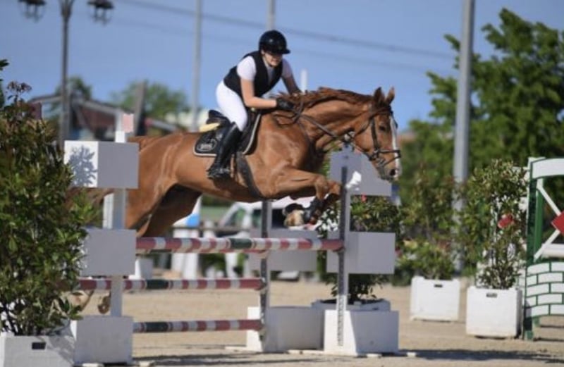 - Hongre - 8 ans (fait le 24/03/26) - Alzan - 1.75cm - A fait jusqu’à 115 en concours 120 à la maison - A potentiel pour plus - Caractère calme et respectueux du cavalier - Longe ok - Paddock seul ou avec autre chevaux a côté ok - Extérieur/balade/campagne ok - Van/Camion aucun problème - Actuellement au alentours de Lyon