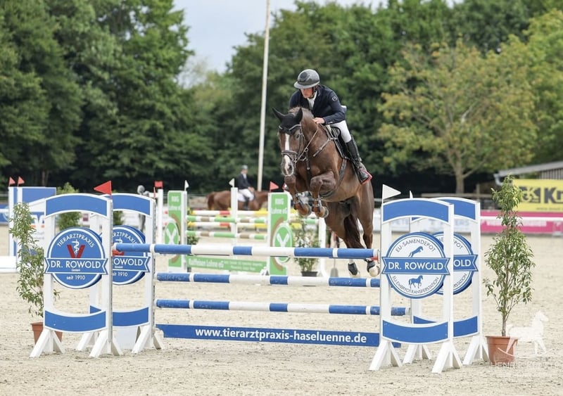 Puledra di qualità – Da Coeur Rouge (figlio di Conthargos) su una fattrice Harley VDL che ha saltato fino a 1,35 m da sola. Una splendida puledra nata nel 2025, con linee di sangue eccezionali nel salto ostacoli. È ben proporzionata, con un corpo atletico e corretto, leggera sui piedi e che mostra un’attitudine sicura e apprendibile. Allevata per il salto, possiede tutti gli ingredienti per svilupparsi in un cavallo di alto livello per il futuro. Un serio potenziale per lo sport o l’allevamento, offrendo un pedigree forte, un background da prestazione e un potenziale entusiasmante. Il suo stallone, Coeur Rouge, è figlio di Conthagos, uno dei stalloni di salto più influenti della sua generazione. Di successo internazionale, ha prodotto numerosi cavalli da sport di alto livello. Ha fatto un’impressione immediata con la sua prima cucciolata, producendo numerosi puledri elite e lotti di alto valore alle aste ESI Elite a Klein Roscharden e Oldenburg Elite Foal Auction a Vechta, dimostrando il suo straordinario valore genetico nel salto ostacoli. Con questo esordio riproduttivo impressionante, Coeur Rouge si è rapidamente affermato tra i stalloni più promettenti e nel 2024 è stato premiato come Main Premium Winner ai Oldenburg Stallion Days. Anche la linea materna è di grande qualità — la nonna ha prodotto due fratelli che hanno gareggiato con successo fino a 1,45 m e 1,60 m, sottolineando la profondità di qualità e capacità di alto livello della famiglia. Il suo nonno materno Harley VDL non ha bisogno di presentazioni, avendo saltato fino a livello Grand Prix e avendo prodotto molti cavalli da 1,60 m. Per raggiungere 16.2 hh Registrata AES Ben maneggiata, conduce bene, si fa visitare dal ferratore ed ha un carattere molto indipendente e coraggioso £9000 Disposta ad ascoltare offerte sensate