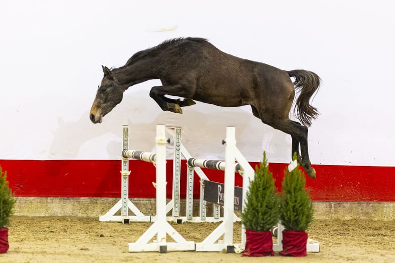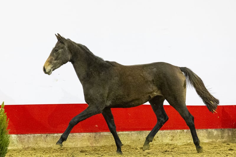 Melicce is a compact, modern mare with blood and quick reflexes. She jumps lightly and sharply, showing an attractive technique with sufficient scope. She moves with good body use and displays a willing attitude, making her very appealing as a future sporthorse. A young mare with expression and potential. Her sire Horizontal, by Casall, is only eight years old but already competes successfully at 1.45m level. He stands out for his mentality, scope and the quality he passes on to his offspring. Her dam is also being sold in this auction, giving a clear view of this proven family. Granddam Elicce has produced two horses jumping 1.40m and higher, and further in the damline several horses competed at 1.40m and above — a reliable performance pedigree. Melicce comes from one of Germany’s largest and most reputable sporthorse breeders. She is completely unbroken and knows nothing more than a halter. Having lived exclusively in the field, she has had plenty of time to grow correctly and develop strength in her body and legs. An honest and pure mare now ready to begin her training. With her type, jumping style and strong damline, Melicce offers excellent future potential — both for sport and for breeding.