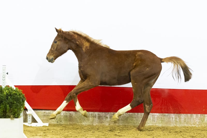 A true rough diamond. In her first jumps she already shows tremendous reflexes and outstanding quality over the fence. She jumps with a beautiful style and clearly has the foundation of very good technique. Beautifully uphill built, modern in type and light in her body. She appears to possess exceptional qualities, combining scope with technique. A young horse with clear potential to develop towards higher levels.