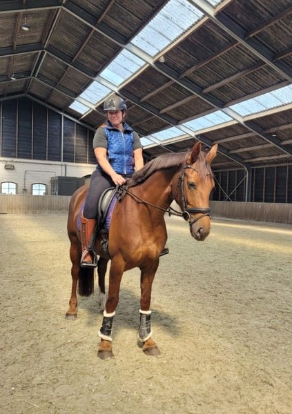 Amora ist eine schöne DA-Stutfohlen mit großem Potenzial für Dressur, aber auch für Springen. Zwischen den Fotos befindet sich ein Bild von ihrem 11 Tage alten Fohlen, das am 11. April geboren wurde. Ebenfalls zwischen den Fotos sind drei Bilder von ihrer eigenen Fohlentagezeit – sie bewegte sich schon immer perfekt und tut es auch heute noch wie keine andere. Im Jahr 2025 wurde sie von der erfahrenen Tour-Reiterin Kim Telgen eingeritten und anschließend wieder nach Hause gebracht, da sie tragend war und ein wunderschönes Stutfohlen zur Welt brachte, das wir behalten werden. Amora ist eine gute Mutter. Die Fotos und Videos unter dem Sattel stammen vom Einreiten und spiegeln daher nicht ihr endgültiges Gangbild unter dem Sattel wider. Die Technik beim Springen verbessert sich bei ihr noch deutlich, je mehr Erfahrung sie sammelt und je höher die Sprünge werden. Das war bei ihrer Mutter und Großmutter ebenfalls der Fall. Amora springt mit viel Power losgelöst, unter dem Sattel hat sie noch nicht gesprungen. Eine beeindruckende Erscheinung aus dem Karla-Stamm und direkt verwandt mit den KWPN-Zuchtstuten Transvaal und Blue Horse Kingston. Tatsächlich auf hohem Dressur- und Springsniveau. Amora kann nach dem 1. November zu ihrem neuen Besitzer ziehen. Kontakt: edskotakens@kpnplanet.nl