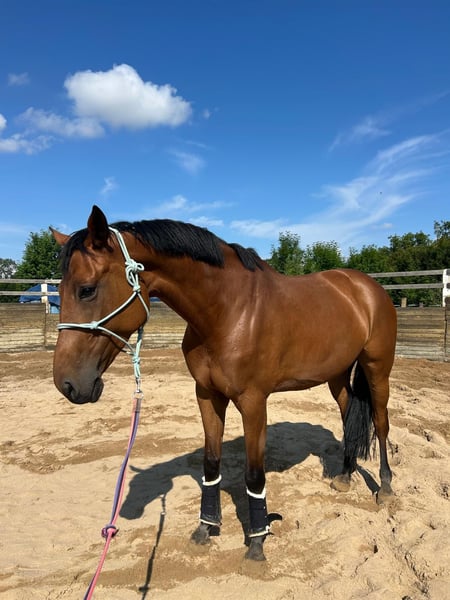 I would like to present a young mare with exceptional potential for top-level sport. She stands out for her very feminine conformation, eye-catching elegance, and grace. Golden bay in color, with no markings. She is confident, reliable, and eager to learn, showing rapid development and natural talent. She effortlessly jumps colorful and technically demanding courses. Normandie boasts an excellent pedigree. Her sire, Joyride ES, competes at the 1.45 m level (→ https://www.fei.org/horse/106PE17#infoHorse ). Joyride ES is by Verdi TN, whose international achievements place him among the best horses in the world. Verdi competed in all senior championships from 2011 onward, winning two team gold medals (WEG 2014, Aachen 2015) and a team silver medal (London 2012). With Verdi on the team, the Dutch national squad also won the Nations Cup Final in Barcelona in 2014. Individually, he won, among others, the GCT Grand Prix in Madrid, the Longines Grands Prix in Lyon and Al Ain, and the Salzburg Grand Prix. On the GCT circuit alone, he earned nearly €400,000. The dam line of Joyride ES traces back to the outstanding stallion Heartbreaker. Normandie’s dam comes from a line of horses successful at national level in eventing (CCIs) and show jumping. → https://www.bazakoni.pl/database,op-show_tree,horse-218042.html Normandie is regularly vaccinated, dewormed, and shod, and receives consistent dental care. She travels very well, is easy in daily handling, and stands quietly for the farrier and veterinarian. Despite her young age, she remains calm and composed at competitions, showing maturity beyond her years. She is currently in regular show-jumping training with Karol Chrzanowski. If you are looking for a horse with a good temperament, ambition, and great future potential, Normandie may be the perfect choice. Directly from the breeder. For more information, current photos, videos, or to arrange a visit, please contact me. Pedigree: https://angloeuropeanstudbook.co.uk/database/826002190887796-normandie Location: 55-050 Wojnarowice, Poland Contact: +48 669 594 388 https://angloeuropeanstudbook.co.uk/database/826002190887796-normandie