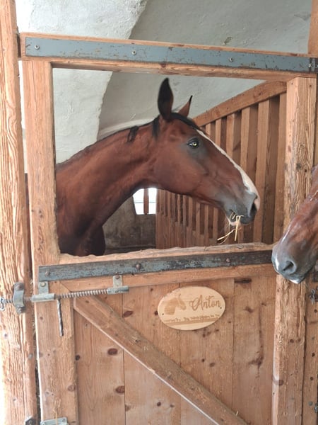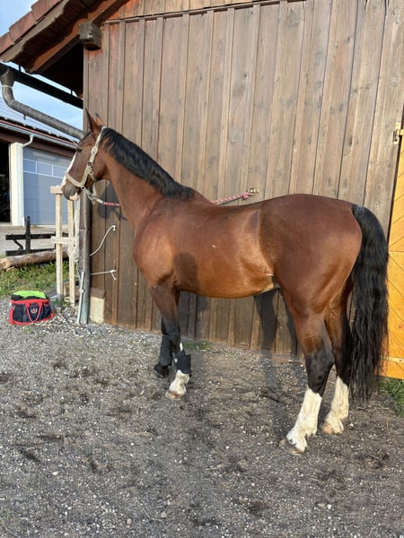 Verkaufe eleganten Wallach – ideal für ambitionierte Fahrer Hallo, ich heiße Dondersteen kurz Anton und ich bin im Anglo European Studbook eingetragen und überzeuge mit einer guten Abstammung. Ich bin für mein Alter kerngesund und fit wie ein Turnschuh! Als ehemaliger Profisportler kenn ich alles was normalerweise meine Kollegen fürchten😂. Als richtiger Angeber in brauner Jacke verstehe ich mich wunderschön zu präsentieren. Ich vertrage mich mit männlichen und weiblichen Kollegen. Habe mit allen Pferdchen Spaß auf der Koppel. Ich lasse mich gerne einspannen für Zwei- oder Einspännig und liebe außerdem Freispringen, Bodenarbeit und Spaziergänge. Was ich nicht mag👆🏻ist geritten werden. Find ich nicht so toll. Ach ja ich habe natürlich einen FEI-Pass. Mein Preis ist auf jeden Fall verhandelbar PS: ich lieeeebe Karotten, Bananen und Rote Rüben