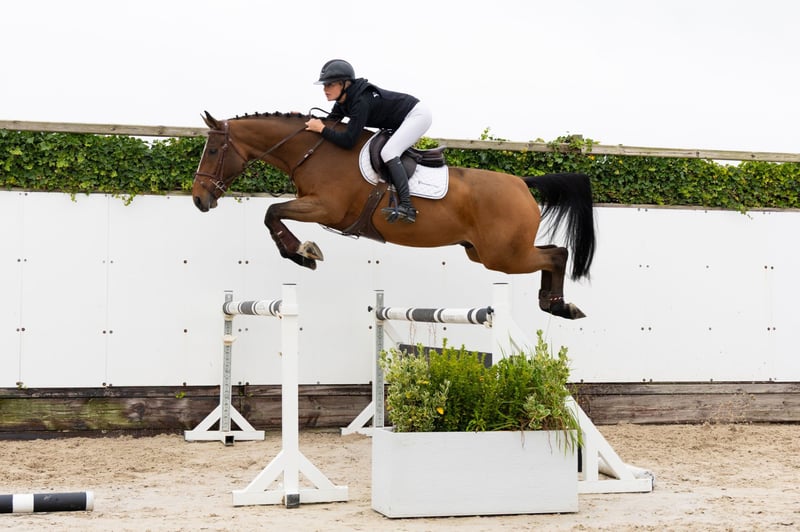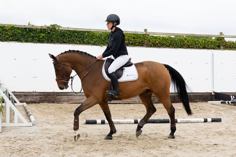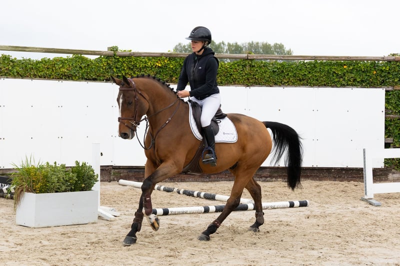 The five-year-old Pruday BH is a show jumping horse with a lot of drive and commitment. He has gained experience over courses up to 1.00 m and easily clears higher obstacles. His half-brother, Prince Blue BH (Chacco Blue), of the same age, is approved in Hungary. His sire, Interadel BH (1.40 m jumper), is a son of Diamant de Semilly x Darco and a grandson of the 1.55 m show jumping mare Intradella Z. His dam, Baby Face, is a French-bred mare by Dancy du Plape (1.35 m jumper). The granddam, Quinconce, is a well-bred mare as the daughter of Papillon Rouge x Le Tot de Semilly. She also produced the 1.60 m Grand Prix horse Queenie with Gabrielle Chugg (AUS) and is a half-sister to the renowned approved stallion Orient Express HDC (1.60 m GP with Patrice Delaveau), Uncommon (1.55 m GP), and Grabuge (1.50 m level). From this lineage also comes the famous stallion Dollar dela Pierre (1.60 m GP with Reynalt Angot).