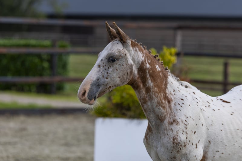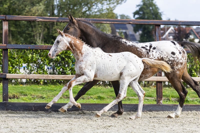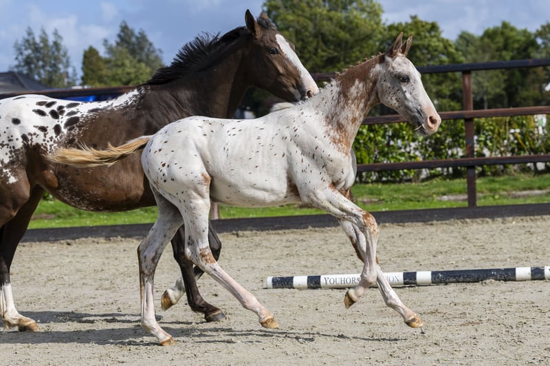 Wie auffällig möchten Sie ihn haben? Weiß mit braunen Flecken und sein Hals ist braun gescheckt. Special Effects macht seinem Namen alle Ehre. Es ist ein hochbeiniges, leichtfüßiges Fohlen mit einem kraftvollen Galopp. Vater ist der sechsjährige, bunte Hengst Ohio de Peru (1,20 m Springen), Sohn des 1,60 m Grand Prix-Hengstes Con-Cor. Die Mutter Touch of Magic stammt von dem Appaloosa-Hengst Joly Spot K Z (1,20 m Springen). Die Großmutter Una d’Or T (Nimmerdor x Renville) ist eine Halbschwester des 1,60 m Grand Prix-Pferdes Jan Aart T und zweier Pferde auf 1,40 m Niveau und ist die Tante von Courage T Z (1,60 m GP) sowie den 1,55 m GP-Pferden Zalerno und Miss Willow T. Una d’Or T brachte selbst die Springpferde Blue Boy T (1,40 m Springen) und Gys van Avantos Weering (1,30 m) sowie ein Pferd auf 1,20 m Niveau zur Welt.