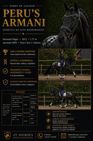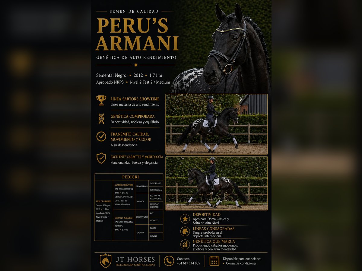 PERU’S ARMANI 💎 Semental centro europeo de capa Appaloosa en base negra. Alzada 171. CAMPEÓN ABSOLUTO 2016,2017,2018 y 2019. Presentó 4 camadas y fueron catalogadas como excelentes. Caballo aprobado de por vida como semental 2021, transmitiendo a sus descendencia, movimientos, estructura y nobleza. Líneas genética Sir Donnehall I. Disponible para cubriciones en España. ☎️ 617144005