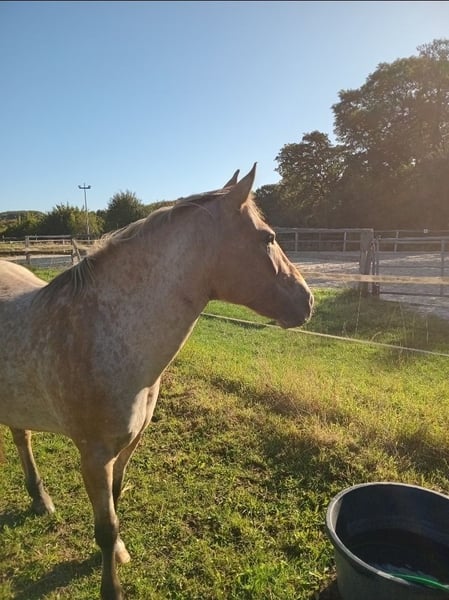 Meine ab Juli 11 Jährige Ponystute Sue sucht nach einer zuverlässigen Reit- oder Pflegebeteiligung die 2-3 mal die woche kommen, und mich entlassten kann. Sue ist 140 cm groß und ein superliebes, wunderschönes Pony mit dem man viel spaß haben kann. Sie geht alleine oder mit anderen auf den Platz oder ins Gelände uns ist dabei grundsätzlich gelassen und entspannt. Auch Bodenarbeit oder einfach mal betüddeln lässt sie sich gerne gefallen. Sie lässt sich überall anfassen und macht so ziemlich alles mit. Wir suchen jemanden der sich in unsere süße Maus verliebt, dem das Wohl des Pferdes am wichtigsten ist und der gerne mit ihr Zeit verbringen möchten, Ob Reiten oder vom Boden aus bewegen (longieren, Spazieren, Bodenarbeit). Bei einer Reitbeteilugung würden wir eine schlanke Person ab 16 Jahren bevorzugen. Das misten der Box und stopfen der Heunetze gehört bei uns mit dazu. Sue wird gebisslos geritten und ist kein Sportpferd, jemand mit Turnierambitionen oder der sich auf Turnierniveau weiterbilden möchte kommt nicht in frage. Trotzdem muss sie auf dem Platz, wo sie sehr faul sein kann, auch mal gymnastiziert werden, was für sie sehr wichtig ist. Bestenfalls also keinen Anfänger. Uns ist wichtig, dass ein Pony von Sues Größe nicht mehr als 60 kg tragen sollte und die gerte als verlängerter Schenkel und nicht zum bestrafen oder drauf hauen verwendet wird. Wir haben eine Private Reitlehrerin bei der besten falls auch unsere Reitbeteiligung 1-2 mal im monat Reitstunde bekommt. Eine Reitstunde kostet 40 euro, man kann diese aber auch zusammen machen dann sind es für jeden 20€. Also ist 1 mal gemeinsam reitstunde im preis inbegriffen. Uns ist sehr wichtig, dass der Mensch zum pferd passt, daher kann man sie natürlich persönlich kennenlernen und auch probereiten. Falls noch Fragen offen sind oder intresse besteht bitte melden.