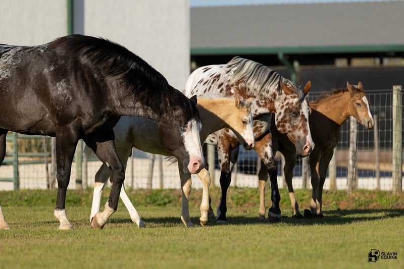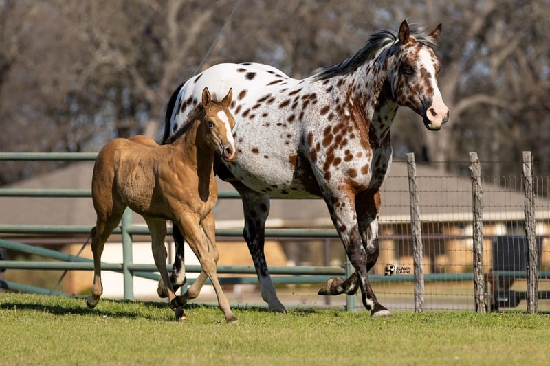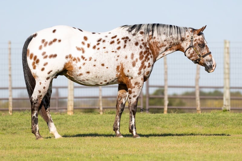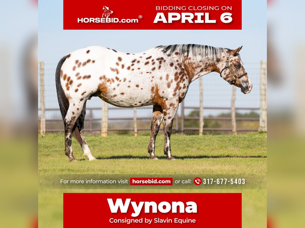 🌟𝑨𝒑𝒓𝒊𝒍 𝐀𝐋𝐋 𝐒𝐓𝐀𝐑 𝐋𝐈𝐍𝐄𝐔𝐏🌟 Happening now thru MONDAY | APRIL 6th - Available EXCLUSIVELY on HorseBid's website! For more details and to register visit: www.Horsebid.com CONSIGNOR CONTACT: Slavin Equine 317-677-5403 LOCATION: Whitesboro, TX BREED: ApHC REGISTERED: Yes REGISTERED NAME: Brokers Dreamcatcher COLOR: Bay Leopard HEIGHT: 15.3 AGE: 14 GENDER: Mare Meet Wynona! It’s not often you come across a leopard mare as boldly colored and uniquely marked as Wynona—and rarer still to find one with a disposition this exceptional. “Brokers Dreamcatcher,” a registered ApHC daughter of Brokers Reward, bred by the legendary Iron Horse Ranch, is nothing short of breathtaking. From her unique amber eyes to her vividly spotted coat, Wynona is the kind of mare that instantly captures attention wherever she goes! Wynona is a substantial, beautifully made mare with all the size, shape, and bone you could ask for in a broodmare. She represents the kind of quality, presence, and consistency that breeding programs are built around. As striking as she is, her personality may be even better. Wynona is an absolute sweetheart—gentle, kind, and incredibly easy to be around. She is a true professional in every sense, making daily handling effortless and enjoyable. Her calm, willing nature has made her a barn favorite, and it’s clear she is passing those qualities on to her offspring. At her side is her 2026 ApHC dun filly, “June,” and she is every bit as exciting. Born January 26 and sired by the accomplished Tru Legacy (earner of $13,000+ and 3-Time Reserve World Champion), June has inherited her dam’s signature amber eyes along with that same sweet, people-loving personality. She is affectionate, curious, and absolutely thrives on attention—an outstanding young filly with a bright future ahead. She is halter broke. Wynona has been confirmed in foal to The Last E, with a last breeding date of February 6, 2026, and an expected due date of January 12, 2027. Wynona has proven to be an easy, reliable breeder—settling quickly and carrying with ease. Palpation videos are available in the gallery above. This is a standout 3-in-1 opportunity you don’t want to miss: * Wynona (exceptional leopard mare and proven producer) * Her 2026 dun filly at side * Foal in utero by The Last E (2x AQHA World Champion, 5-panel N/N) All paperwork is complete and in perfect order for the mare, the filly, and the foal in utero. We are happy to assist with shipping anywhere in the United States or even internationally! Wynona and her sister Naomi have been together long-term and get along exceptionally well, as do their foals. They would make a phenomenal pair to keep together, but Wynona is adaptable and transitions seamlessly into new herds and environments. Come visit us in Whitesboro, Texas, and see for yourself why this stunning, sweet mare and her standout colt leave such a lasting impression. For more information, contact Parker at 317-677-5403.
