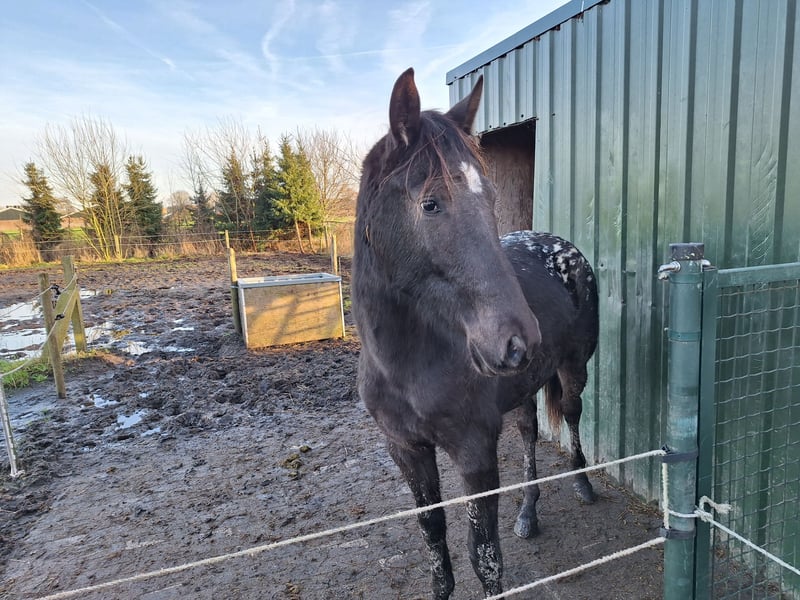 Tara is a 2-year-old foal with a very gentle temperament and a tall stature. She is an Appaloosa registered with the Dutch Appaloosa Studbook. Her dam is also available and is for sale; she is an 8-year-old mare.
