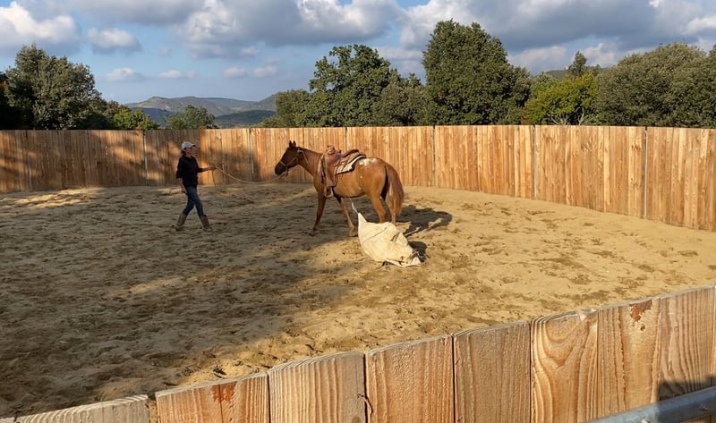 Bambi ist eine 4-jährige Stute mit vollem RBP-Papier. Sie misst derzeit 1,45 m und hat ein ausgezeichnetes Wesen. Im täglichen Umgang ist sie sehr unkompliziert und dem Menschen äußerst zugewandt – ein echtes Kuschelpony. Auch mit anderen Pferden versteht sie sich sehr gut. Unter dem Sattel zeigt sie sich ebenfalls brav und willig. Sie wird in allen drei Grundgangarten auf dem Reitplatz und im Gelände geritten und kennt das Reiten sowohl mit als auch ohne Gebiss. Bambi ist die ideale Partnerin für Mountain Trail, Ausritte oder die Arbeit auf dem Reitplatz. Sie kann auch für einen Anfänger unter Anleitung geeignet sein. Bambi befindet sich bei uns im Süden Frankreichs (Aude). Wir arbeiten mit zwei professionellen Transportunternehmen zusammen und kümmern uns um die Organisation des Transports sowie um die erforderlichen Formalitäten. Wenn Sie Interesse an Bambi haben, können Sie uns gerne telefonisch kontaktieren – wir geben Ihnen weitere Informationen und erstellen Ihnen ein Transportangebot.