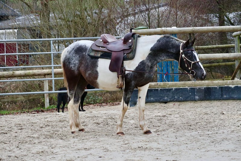 Appaloosa-pintomix -Stute – Perfekt für westernreiten und Hobby- im Auftrag des züchters. Zum Verkauf steht eine wunderschöne Appaloosa-Stute, geboren im Jahr 2022. Sie ist eine charaktervolle Schecke mit einem ausnahmecharakter! Wahnsinnig brav! Anfängertauglich! Stockmaß von 145 cm. Die junge Stute ist ideal für Freizeitaktivitäten und bietet viel Potenzial auch als familienpferd. Ihr superliebes wesen macht sie zu einem angenehmen Begleiter im Alltag. Sie ist gesund, gut sozialisiert und bereit für neue Abenteuer. Sie läuft jedem nach wie ein hund und ist der liebling im stall! Auch bei den anderen pferden. Bei Interesse oder weiteren Fragen stehe ich Ihnen gerne zur Verfügung. Besichtigung und Probereiten nach Vereinbarung möglich. Bitte beine emails nur telefonisch oder whatsapp 0049 1715348287