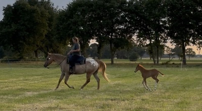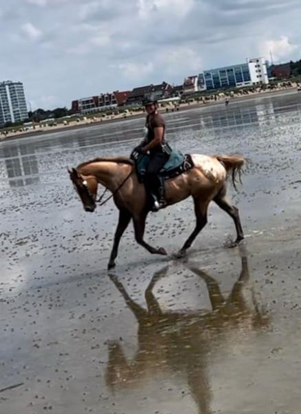-7 jährige Appaloosa Stute zu verkaufen ✨ca.1.65m groß ✨muskulös, korrekt und sehr stabil gebaut (Gewichtsträger ) ✨war schon am Rind, im Watt, in der Heide, auf Turnieren und etlichen Kursen ✨geht allein ins Gelände ✨barhuf ✨lässt sich überall parken, steht auch allein ✨lebt in Robusthaltung im Offenstall in gemischter Herde mit Wallachen, Stuten, Fohlen, Jährlingen ✨ranghoch und intelligent, daher nur für erfahrene, selbstsichere Menschen ✨24/7 Heu und Wiese kein Problem ✨leichtfuttrig, Mineralien als Ergänzung reichen ✨unterm Sattel und an der Hand super artig und top erzogen , ansonsten etwas stutig im Umgang ✨100% schmiede - Verladefromm ✨Schussfest , da wir neben Bundeswehr leben ✨verkehrssicher ✨angenehmes Temperament ✨gemütlich , kann aber , wenn sie soll auch gut vorwärts gehen ✨mit Pass und Papier ✨Zuchtshowsieger in Dönsel 2022 ✨1.Fohlen von diesem Jahr ist super hübsch , sie ist tolle Mutter und hatte direkt aufgenommen.