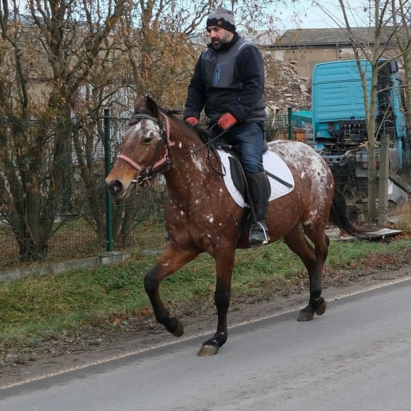 Einfache und unkomplizierte Stute,brav im Umgang und problemlos zu reiten. Sicher im Straßenverkehr und Gelände. 8 Jahre, 152cm Bei Interesse bitte anrufen, keine Mail! Für eventuell auftretende Fehler in der Beschreibung gilt keine Gewähr! Tel.: 0173-3843407 Da es sich um ein lebendes Tier handelt, sind dies subjektive Eindrücke des Anbieters und keine zugesicherten Eigenschaften des Tieres! Ständig schöne Fahr-u.Freizeitpferdesowie neue Kutschen verschiedener Modelle preiswert im Angebot. Anschrift Stall: 99628 Buttstädt, Oberwendenstraße 39