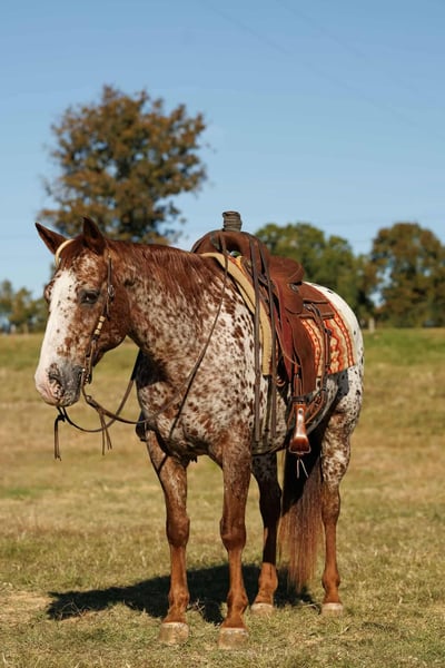 ⚜️𝐓𝐇𝐄 𝐅𝐀𝐋𝐋 𝐇𝐄𝐑𝐈𝐓𝐀𝐆𝐄 𝐂𝐋𝐀𝐒𝐒𝐈𝐂⚜️ Happening now thru MONDAY | NOVEMBER 3rd - Available EXCLUSIVELY on HorseBid's website! For more details and to register visit: www.Horsebid.com CONSIGNOR CONTACT: Lacey Wilf 501-940-8704 LOCATION: Quitman AR BREED: Appaloosa REGISTERED: No REGISTERED NAME: Pop Rocks COLOR: Leopard HEIGHT: 14.2 AGE: 10 GENDER: Gelding Pop Rocks is the kind that makes you grin the minute you swing a leg over him — a 10 year old leopard Appaloosa gelding standing 14.2 hands of pure character, cow sense, and chrome. With that loud, spotted coat and a handle that’ll make you look good doing anything, he’s the perfect mix of flash and function. He’s seen a lot of country and done just about every job there is to do. Pop Rocks has spent plenty of time on the ranch, pushing cattle through brush, doctoring, and getting gates. He’s just as handy at the cow sale — cool under pressure, cowy and quick-footed when needed, and all business when there’s work to be done. His handle is something to brag about: he’ll spin both directions with precision, stop deep and collected, and ride completely off of your feet. Light, broke, and tuned-in, Pop Rocks makes every ride feel effortless. Take him down the trail and you’ll see why he’s a favorite — crosses anything you point him at, from creeks to bridges and thick timber. He never bats an eye at traffic or commotion. He’s surefooted, confident, and always game for the next adventure, whether it’s a long day checking cattle or a laid-back ride with friends. On the ground, Pop Rocks is all class — stands quietly to saddle, bathe, groom, and haul. He handles everything with the same calm, steady demeanor he carries under saddle. With his color, brains, and bridle-horse handle, he’s one of those rare geldings that’s as fun to show off as he is to ride — a true one-of-a-kind with plenty of “wow” factor and a whole lot of try.