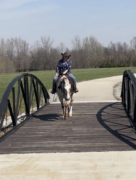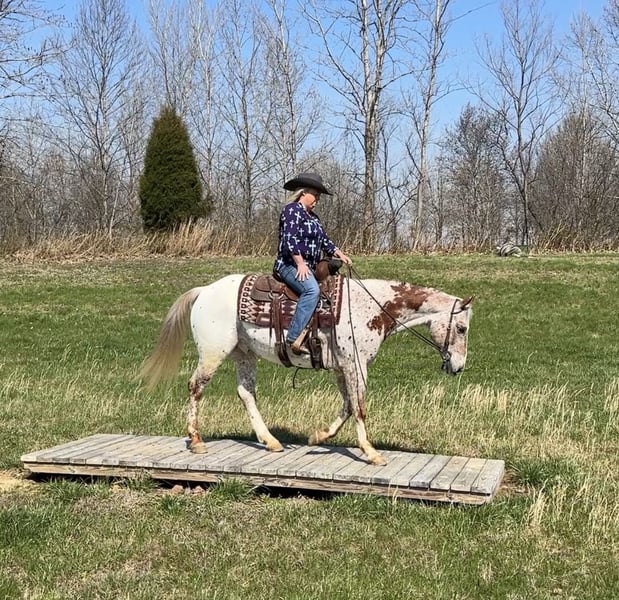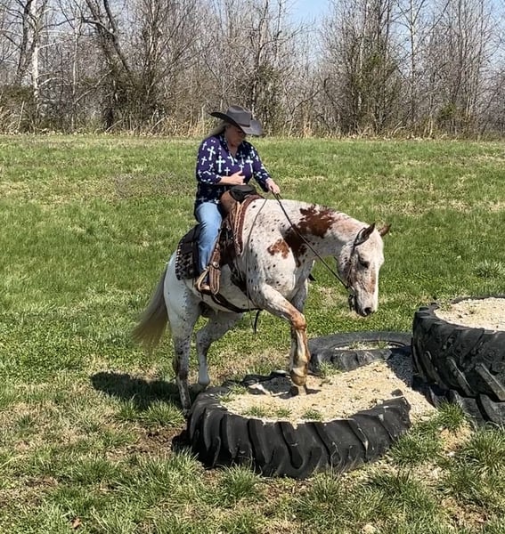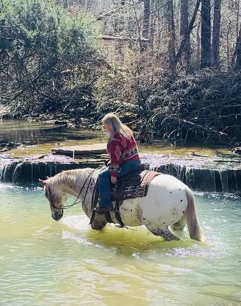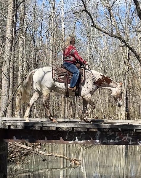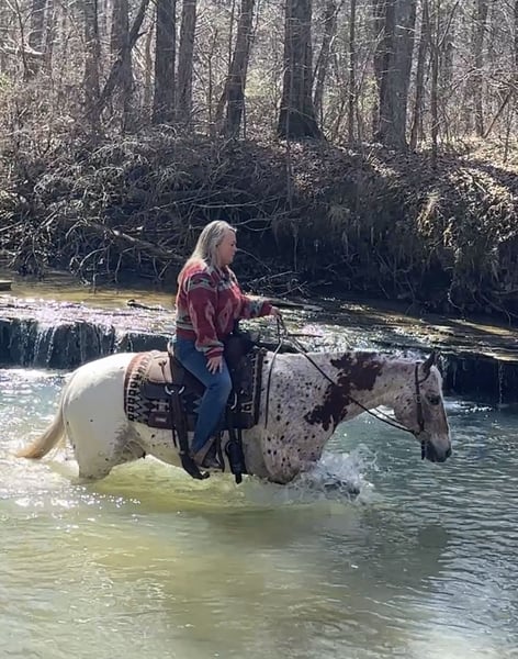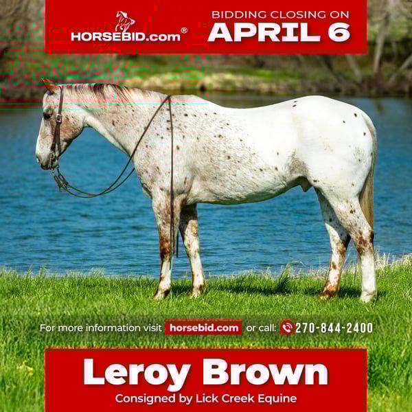 🌟𝑨𝒑𝒓𝒊𝒍 𝐀𝐋𝐋 𝐒𝐓𝐀𝐑 𝐋𝐈𝐍𝐄𝐔𝐏🌟 Happening now thru MONDAY | APRIL 6th - Available EXCLUSIVELY on HorseBid's website! For more details and to register visit: www.Horsebid.com CONSIGNOR CONTACT: Lick Creek Equine 270-844-2400 LOCATION: Henderson, KY BREED: Appaloosa REGISTERED: No COLOR: Appaloosa HEIGHT: 15 AGE: 10 GENDER: Gelding Want something that stands out in the crowd and everywhere you go. Look no further then Leroy Brown. He is a 10yr old Appaloosa gelding he’s selling grade but goes back to Duel Ray and Peppy San Badger on top side. He stands 15 hands tall and has all the color appeal you could want. He’s by far an eye catcher wherever he goes he gets noticed. If you’ve ever wanted that once in a lifetime horse Leroy is the one. There’s no job too big or too small for him. He’s one to want to please his owner. Leroy has been previously used as a pick up horse at rodeos, roped cattle in the pasture and worked at the stockyards. Since I’ve owned him we have went on several trail rides, through obstacles, Dairy Queen drive-thru, Chick-fil-a drive-thru and downtown. He does not get excited and loves all the attention he can get. Leroy is the trusty partner to get you through anything you ask him and be honest, sure-footed and safe. He will do all the obstacles, swim through water, cross creeks, bridges, logs, up and down steep hills. Leroy has a true one hand neck rein, he’s very soft in the face, will side pass to open and close gates, stops when asked and takes both his leads with ease. Leroy doesn’t care if you ride him with a bridle, halter, neck rope or grass string he always carries his head level and just walks right along. Leroy is currently shod all the way around. He stands great for the farrier, baths, tacking/untacking, and mounting. He does great in a stall as well and has great stall manners. He will load and unload himself in and out of the trailer with ease. If you would like to schedule a time to come meet and ride Leroy, or have any other questions about Leroy feel free to reach out at 270-844-2400. We are located in Henderson KY and can assist with transportation arrangements.