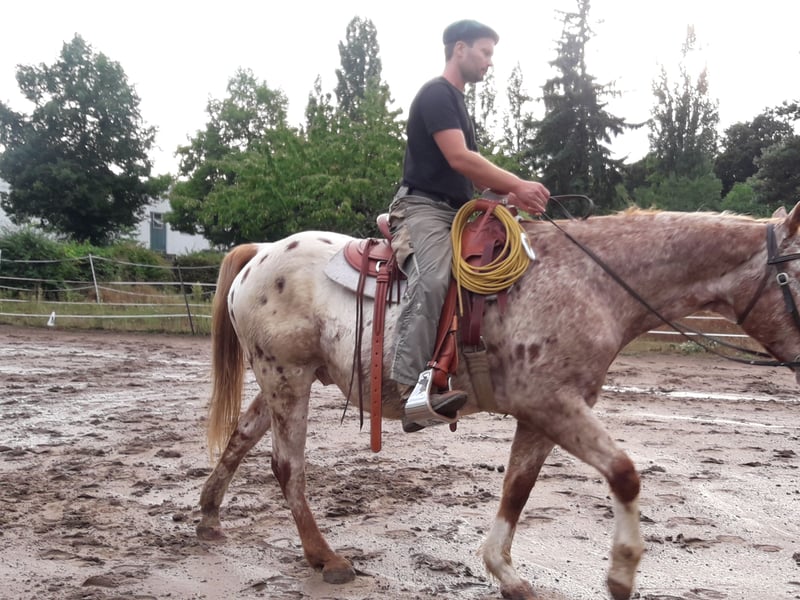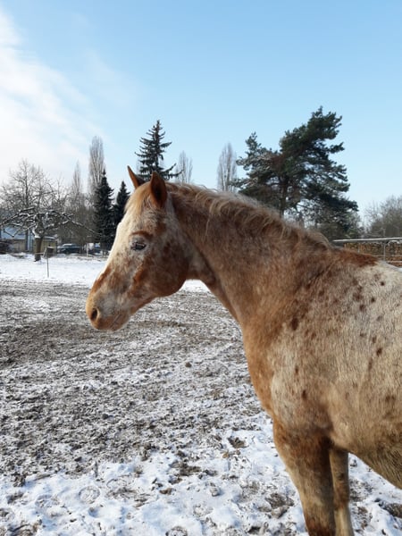 Okie wird in diesem Jahr 27 Jahre alt. Seine bisherige Reit- und Pflegebeteiligung ist leider umgezogen. Da Okie noch lange nicht zum alten Eisen gehört, möchte er auch weiterhin betüdelt werden und was machen! Okie wird am Boden nach den Grundsätzen der klassischen Dressur (Handarbeit am Kappzaum oder auf Trense), sowie nach Horsemanship an Knotenhalfter und Leitseil gearbeitet. Okie liebt es zusammen mit seiner Bezugsperson Hindernisse zu überwinden, die er alleine nicht schaffen würde. Denn Okie ist blind. Er kann auf beiden Seiten nicht mehr sehen und bewegt sich alleine entsprechend vorsichtig. Hat er Vertrauen gefasst, so kann er mit seiner Bezugsperson ohne Probleme Strangenarbreit oder Podestarbeit machen. Auch Zirkuslektionen. Wenn Okie Vertrauen gefasst hat, so ist auch das Reiten möglich. Hierbei ersetzt du seine Augen. Es steht zum Reiten ein Reitplatz zur Verfügung und auch ein schönes Ausreitgelände am Main. Fürs Reiten solltest du wegen seiner Einschränkung ein sicherer Reiter sein. Er wurde Western, sowie nach akademischer Reitkunst geritten. Wir suchen jemanden, der Lust auf Bodenarbeit mit der späteren Option zur Reitbeteiligung hat für 1-2 Tage die Woche. Die Kosten liegen bei 100 Euro Kostenbeteiligung. Darin enthalten ist Unterricht, bis ihr auf einer Wellenlänge unterwegs seid. Danach reduziert sich der Betrag um 50%. Außerdem fällt der Stalldienst an deinem Tag an, das sind 1-2 Schubkarren. Okie wohnt in Klein-Auheim. Wenn du dich angesprochen fühlst, melde dich sehr gerne für ein Kennenlernen!