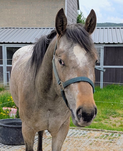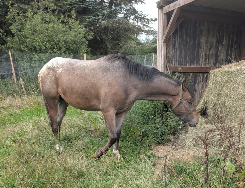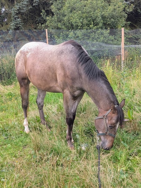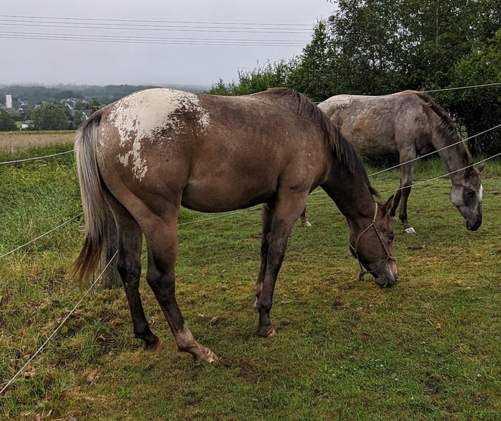 Dee Jay ist ein großer kräftiger Appi Wallach, 157/158 cm Stm. , starke Knochen, harte Hufe. Er wäre jetzt soweit um in den Beritt zu gehen, wir sind befürworter des Anreitens mit 4 oder gar 5 Jahren. Dee Jay ist ein echter Schmuser, er ist kein Hektiker sondern einer der zuerst denkt bevor er agiert. Sehr lieb und menschenbezogen mit viel Grips. Er ist aus altbewährten Ranchhorse Linien gezogen, wir können ihn uns aber auch im Reining gut vorstellen, da er trotz Größe sehr schnell und wendig ist. Für die Ranchhorse Klassen in denen er auch vom Kopf her arbeiten muss ist er perfekt geeignet. Videos können über WhatsApp gesendet werden.
