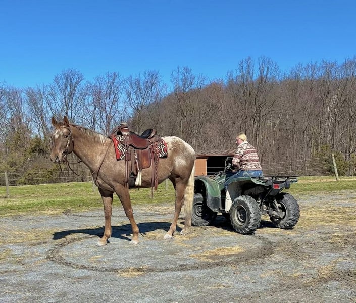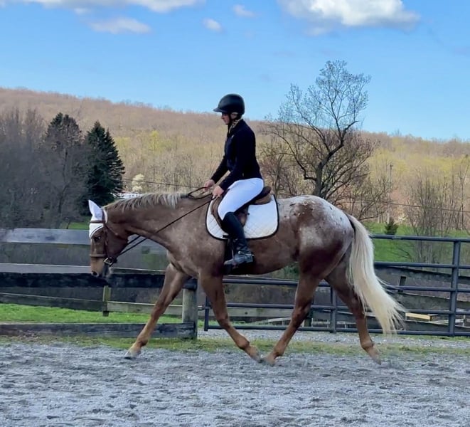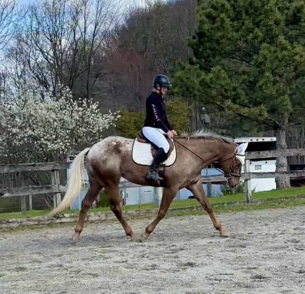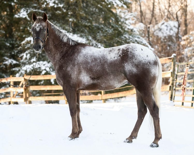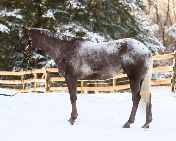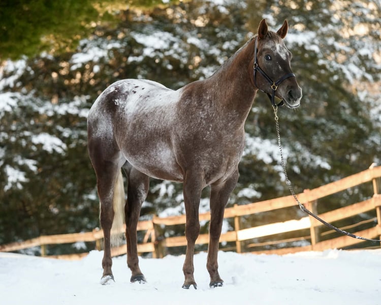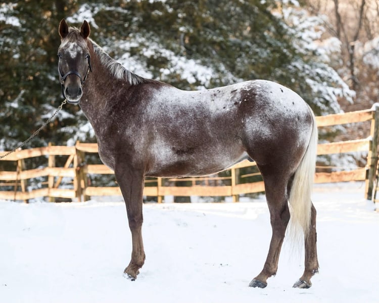 ⚜️𝐭𝐡𝐞 𝓔𝓵𝓲𝓽𝓮 𝐒𝐩𝐫𝐢𝐧𝐠 𝐂𝐥𝐚𝐬𝐬𝐢𝐜⚜️ Happening now thru MONDAY | APRIL 20th - Available EXCLUSIVELY on HorseBid's website! For more details and to register visit: www.Horsebid.com CONSIGNOR CONTACT: Triple R Horses 610-806-2613 LOCATION: New Holland, PA BREED: Appaloosa REGISTERED: Yes REGISTERED NAME: Simply Bangin COLOR: Appaloosa HEIGHT: 16 AGE: 4 GENDER: Gelding “Banjo” is a 4, coming 5yr old (May 9th), 16hh, registered Appaloosa gelding. If you like personality, being safe, having fun, and turning heads, here is your guy. This boy would be good for the whole family! Banjo is a total sweetheart, and loves people. He is guaranteed to put a smile on your face, from lovely rides to putting his head in your arms and talking a nap. Whether you are looking for a husband horse, kid horse, trail horse, show horse, Banjo will do it all! In the barn, Banjo has zero bad habits. He is a super chill around dude. He can live in or out, with others or alone, he doesn’t care. He has zero stall vices and never asks for anything. You can often find him sharing his hay with his stall neighbor through the cracks of his stall, or taking a snooze. He loves to lay out in the pasture and soak up the sun. I have turned him out with bossy mares, clingy geldings and now he is babysitting my yearling. He causes no drama and just minds his own business in the pasture. Banjo will always walk up to you in the field and he is the safe type of guy that you can trust sending your kids out to catch, or climb all over. He just likes to be involved. Banjo stands on the cross ties patiently to be groomed, tacked, bathed, loved on, you name it. He is safe with kids, beginners and dogs running around his feet, and I don’t think that he would ever, even hurt a fly. You can climb all through his legs and under him. He enjoys being loved on, and making you giggle. Banjo has great ground manners, he is gentle and laid back. He has even dabbled in showmanship and knows more than I do in that discipline. Banjo lunges well, and roundpens. He is totally gentle to work around, and he ground ties as well. I often drop him in the middle of the arena to go pick up poop and he waits for me every time. Banjo loads and trailers, and you can tie him to the trailer to get ready. He is a good boy off property, and the same horse every ride. I had Banjo through this awful winter, I was only getting to ride here and there…. He was a horse that I could trust every time to hop on and go ride with no silly business. He even did the best job at pulling my friends around on a sled!!! On the trails, Banjo will lead, follow, go out alone and in groups. He is willing and brave on the trails and goes where you ask. Into the lake, across the creek, over the logs, canter through a field then drop right back down to a quiet walk. He is safe with traffic, machinery, four wheelers, bikes, dogs, strollers, deer, turtles(yes turtles) and I have had him out shed hunting(bushwhacking looking for antlers). He is the perfect combo of drop your reins and follow or lead and enjoy the ride, or ask him to move out and have fun and he will. He will pack your husband around then take you to a hunter pace type of guy. He absolutely loves trail riding and takes good care of his rider. Banjo has been out on over night camping trips as well!! He is the ultimate all around horse! Banjo rides western, english, and bareback. He has super comfortable, uphill gaits. His gaits are adjustable and he has smooth transitions. He rides in a plain snaffle, and I have ridden him a few times with just a neck rope. He is soft in your hands and listens well to voice commands. He is more of a push style ride, but moves out when asked without a crop or spurs. He is not a horse that needs lunged before riding and doesn’t need a routine to stay sane. In the ring, Banjo will walk, jog, trot, lope, canter, and knows his leads. He is learning the fundamentals of a lead change but doesn’t have a solid change yet. He will move off of leg laterally, and ride off of your seat and legs. He is not a reactive horse and takes care of beginners as well, and will not be bothered if they accidentally press a “button”. He doesn’t get upset with off balance riders and can take a joke. Banjo will stop with “whoa”, back up, pivot, neck rein, and is learning to side pass. You can stop fast with whoa or bring him down slowly through the gaits. Banjo will ride collected, on the buckle, and will put his head where you ask him. Lower his head, or leave it up for balance. Banjo has been lightly introduced to jumping. I popped him over a few small cross rails this winter, then didn’t ask him to jump again until recently as he has only been four years old his whole time with me. He has always been honest and brave to fences and tries his best. Banjo is a very intelligent horse that likes to please his rider. He enjoys learning and being rewarded. Banjo did show a little when he was younger in some western classes. This boy has potential and the looks to head into absolutely any discipline. He is currently set up as a versatile horse, ready to go in the direction that you want to pursue. Banjo is an easy keeper, with a simple diet and no maintenance. He doesn’t have any special requirements. He has been barefoot his whole life, has very solid feet, and clean legs. He was started slowly and correctly. Banjo is great for the vet and farrier. Banjo has been an amazing horse to have around. He is the barn clown, and will take lead ropes off of his door, make funny faces, and just knows how to make your day better. He has a very calming and kind personality, easy to bond with. He is the horse that you can go sit with or hug if you are having a bad day. Not only is he honest and sweet, he is absolutely beautiful!!!! Banjo is the all around, family safe, versatile horse that everyone is looking for. I am very thankful for my time with 