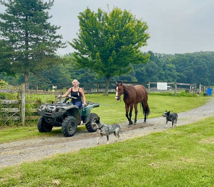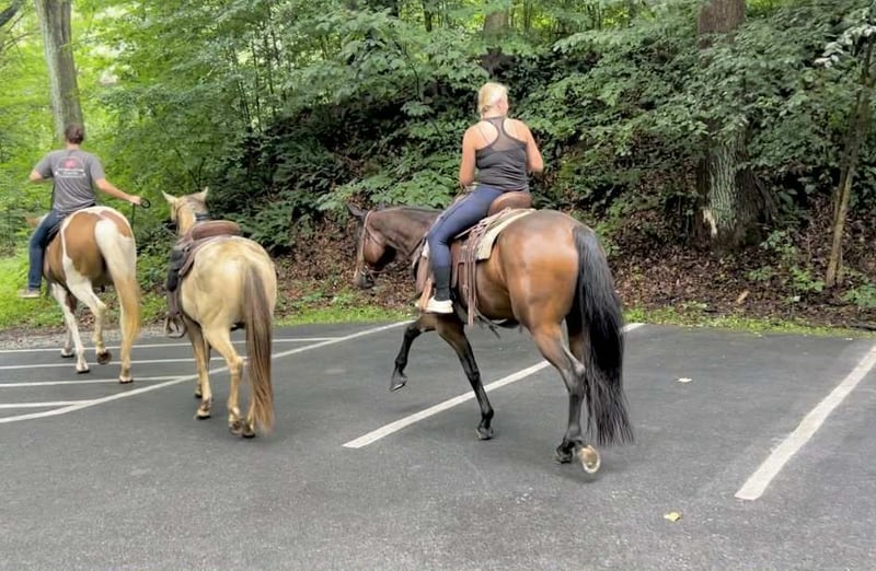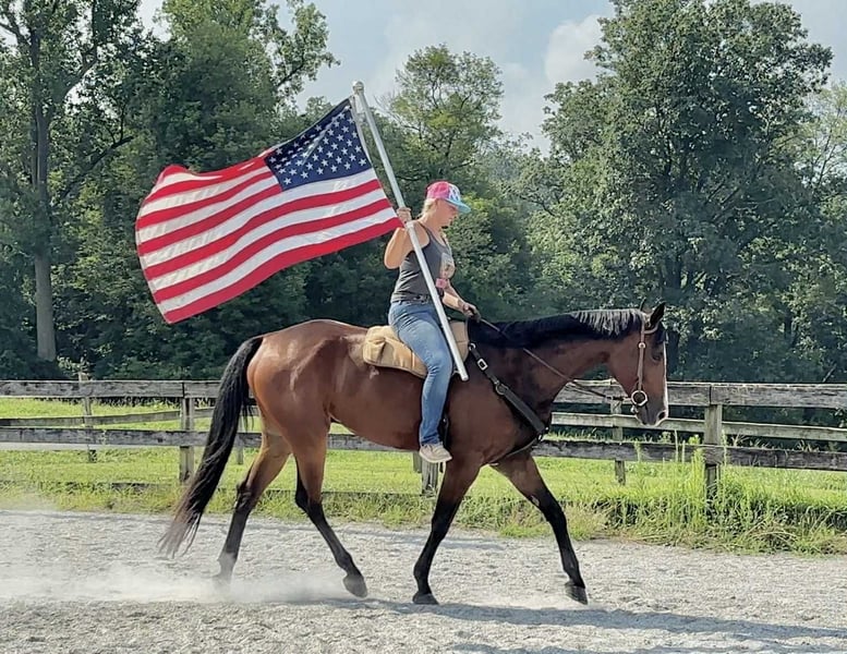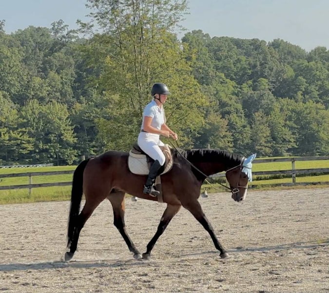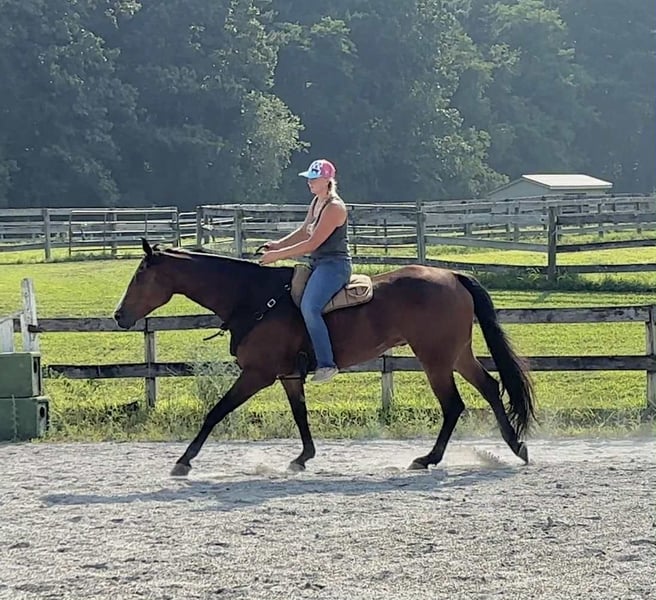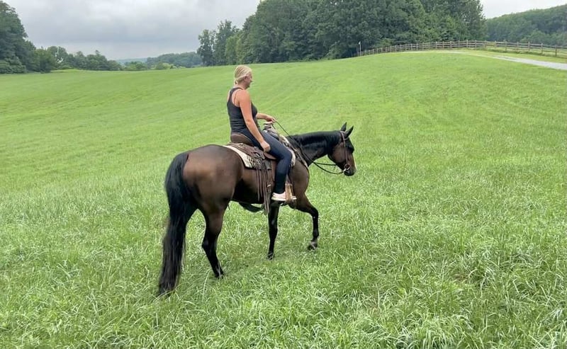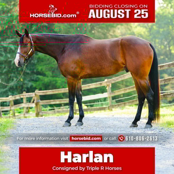 ⭐️ 𝐀𝐔𝐆𝐔𝐒𝐓 𝓐𝓵𝓵 𝓢𝓽𝓪𝓻 𝓛𝓲𝓷𝓮𝓾𝓹 ⭐️ Happening now thru MONDAY | AUGUST 25th - Available EXCLUSIVELY on HorseBid's website! For more details and to register visit: www.Horsebid.com CONSIGNOR CONTACT: Triple R Horses 610-806-2613 LOCATION: New Holland PA BREED: Appaloosa REGISTERED: Yes REGISTERED NAME: Cowboys N Bullets COLOR: Bay HEIGHT: 16.1 AGE: 5 GENDER: Gelding “Cowboys N Bullets” aka “Harlan” is a 5yr old, 16.1hh, registered Appaloosa gelding. Harlan is a super sweet, docile, laid back gelding, who absolutely loves trail riding and would make a great husband horse! Harlan has a very kind heart, and loves a relaxing adventure out on the trails! He will also dabble in ring work as well, he is safe, and has an old soul. On the trails, Harlan will lead, follow, go out alone and in groups. He is safe for anyone to go hit the trails with and he takes care of his rider. Harlan crosses logs, rocks, water, he is traffic safe, doesn’t care about bikes, wildlife, dogs, etc. He can take a joke and makes for a relaxing ride. Drop the reins and let Harlan follow the group, he will take care of you. Harlan will jog and lope out on the trails and drop back down to a relaxing walk right after. He is brave and willing, he will take the lead and show the way for the group. Harlan would make a great camping partner as well, he stands tied quietly and loves to explore! Whether you, your husband, your kid, or your grandma want to go out and have fun the trails, Harlan will take great care of you! Harlan has smooth, rhythmic, gaits. His lope is very lofty; and very comfortable. I would consider Harlan more of a push ride, yet he will move out when asked without a crop or spurs. He moves off of leg nicely, on the trails and in the ring. He is also doing well with neck reining. Harlan backs up very easily, and will pivot both ways. But even though he has “buttons”, his aids are still beginner and user friendly, making him safe enough for a kid, a husband, etc. In the ring, Harlan will walk, jog, trot, lope, canter, knows his leads, and is a very simple guy to ride. He will ride on the buckle, or collected. He listens well to voice commands, and will ride off of your seat. He rides in a simple snaffle, you could ride him in a halter and lead rope, I even rode him with out a bridle. He is gentle all around. I have lightly introduced Harlan to fences and he took right to it. He is still green and learning over fences but he has been very honest and does a good job. Harlan really likes to please his rider and he is very intelligent. In the barn, Harlan is very easy to work around. He is safe for kids and beginners to work with. He has very good ground manners. The best word to describe this boy is “docile”. He doesn’t mind dogs running all over the place. Harlan stands well on the cross ties to be groomed, bathed, tacked, etc. He is good for the vet and farrier. Harlan is an easy keeper with no maintenance or supplements. When left in his stall for long periods of time, he will mildly crib. It’s usually when he runs out of hay, or it’s been a long day. I have not witnessed Harlan cribbing at all while turned out. Other than that, he has no other bad habits. Harlan is a babysitter in the pasture, he is super drama free and loves all horses. He currently lives with mares and geldings and stays out of the way. I wouldn’t call him a low man, just doesn’t like any trouble. He is easy to catch and will greet you at the gate. Harlan truly has an old soul, he is very adored here as he is safe for anyone to play with. He is so easy to have around and has been such a joy to work with. He is always game for whatever I put him to that day. He does not have to be in a routine, and he has been a tack up and go type of guy. Harlan will self load into the trailer, trailers great, and ties to the trailer to get ready. This guy would make the perfect family horse, or all around partner! For more information on Harlan, please don’t hesitate to reach out! Shipping can be arranged anywhere!
