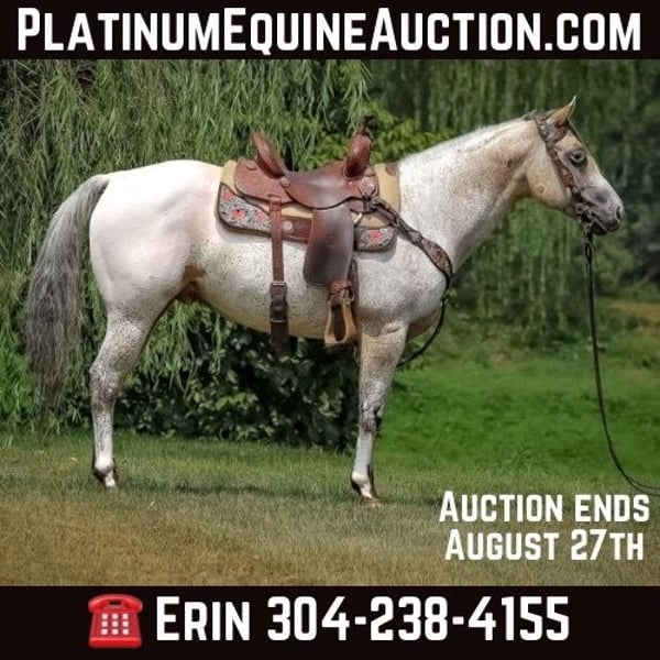 ONLINE AUCTION Place your bids at www.PlatinumEquineAuction.com Starting Bid $3500 Auction ends August 25th, 2024 Need a new saddle? Check out White Rock Saddles on our website or Facebook! This is “Brother”, a FAMILY AND YOUTH FRIENDLY REGISTERED APPALOOSA GELDING that has been shown, used to work cattle, and trail ride. He is a very personable and gentle horse that aims to please and genuinely likes children. He stands 14.3 hands tall and is 6 years old. This gelding has had pleasure training when he was younger and has been shown in the gymkhana events by youth riders. He has been used in the pastures to check cattle and fences. He lopes nice circles, has a comfy jog, and is very easy to stop. He will one hand neck rein, he has a nice turnaround, he backs up and moves off of leg cues. He has been in the mountains trail riding and will cross any depth of water and has swam across deep rivers. He is patient, well broke, seasoned, and experienced. He is a nice family horse that everyone can hop and and enjoy yet if you need to step it up a notch and chase some cattle or have some speed, he can do that too. He calms right back down and is not hot. He will walk relaxed on a loose rein and he has even been used for some riding lessons. If you want one with color, that is registered, just the right size, not too big and not too small and not too fast and not too slow, that is in the prime of his life and has many years ahead of him, here is your chance. He’s flashy, fun, and most of all stays broke and is youth friendly. Located in Flemingsburg, KY. Contact HH Horses Erin 304-238-4155 with any questions. ONLINE AUCTION Place your bids at www.PlatinumEquineAuction.com Starting Bid $3500 Auction ends August 25th, 2024 Need a new saddle? Check out White Rock Saddles on our website or Facebook!