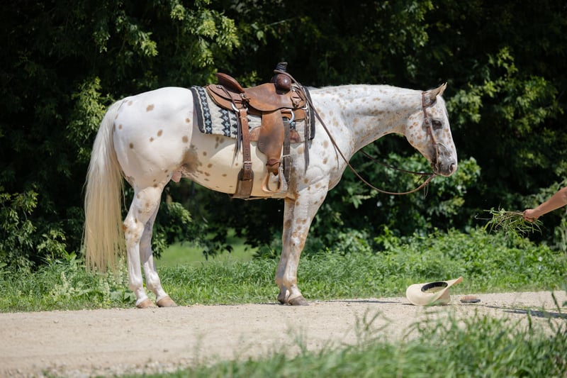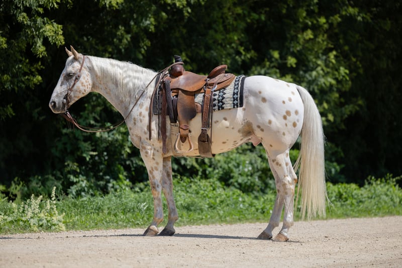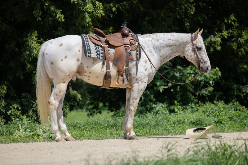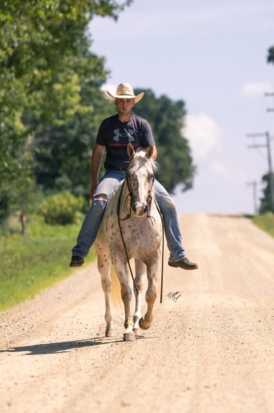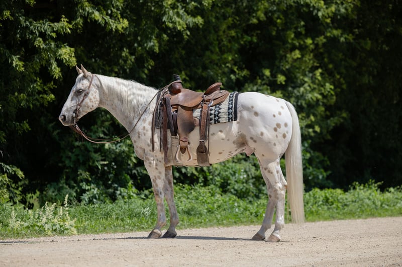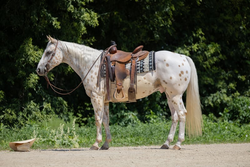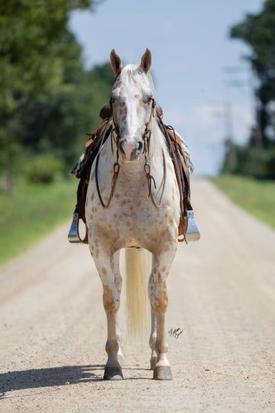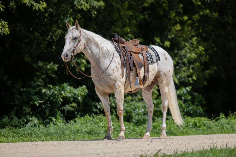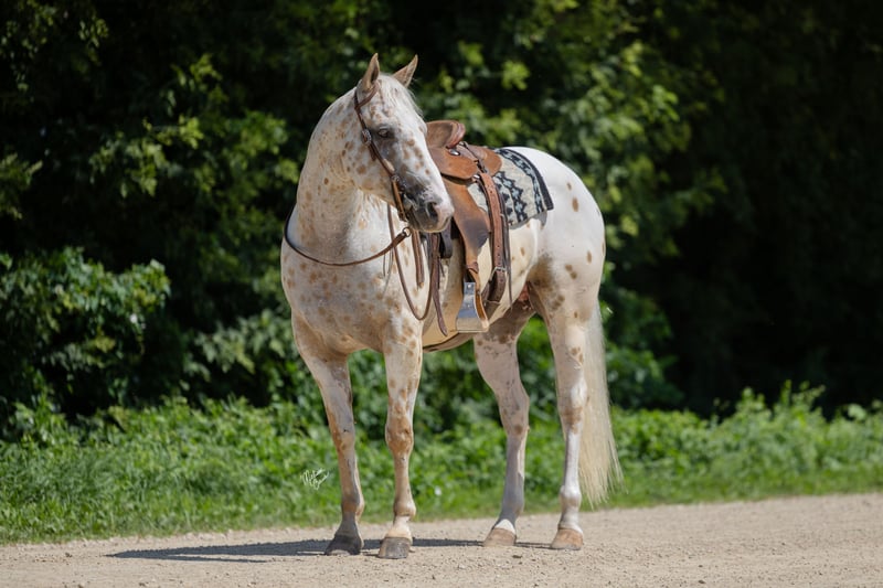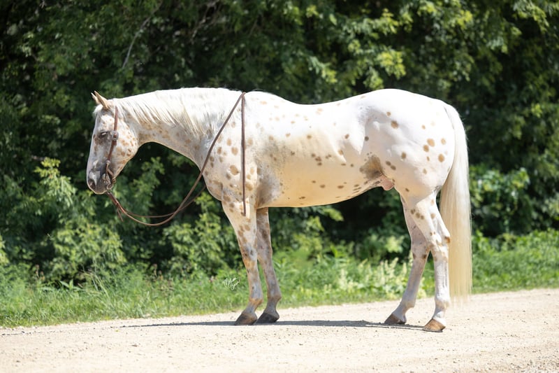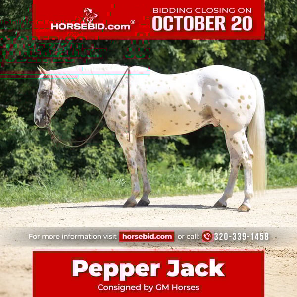 ♦️ 𝐭𝐡𝐞 𝐀𝐌𝐄𝐑𝐈𝐂𝐀𝐍 𝓕𝓪𝓵𝓵 𝓒𝓵𝓪𝓼𝓼𝓲𝓬 ♦️ Happening now thru MONDAY | OCTOBER 20th - Available EXCLUSIVELY on HorseBid's website! For more details and to register visit: www.Horsebid.com CONSIGNOR CONTACT: GM horses 320-339-1458 LOCATION: Cannon Falls, MN BREED: Appaloosa REGISTERED: No COLOR: Palomino and White Leopard Appaloosa HEIGHT: 15 AGE: 7 GENDER: Gelding Pepper Jack 7-year-old Grade Palomino & White Leopard Appaloosa • 15 hh • 1,250 lbs Pepper Jack is thicker than a snicker and just as sweet! This handsome, sturdy gelding has been a barn favorite and a joy to be around. He’s the kind of horse everyone loves to have around—steady, versatile, and always willing to please. Kids enjoy taking lessons on him, guests can hop on for trail rides, and he’s a blast on camping trips. At his young age, he’s already “been there, done that,” and nothing rattles him—nervous riders included. He knows his job, does it well, and is ready for whatever you dream up. In the Arena Pepper Jack rides on a loose rein with an easy neck rein, responds to leg pressure, takes both leads with no fuss, and has a solid stop. He’s fun to ride bareback and is no stranger to teaching bouncy kids, helping adults regain confidence, and giving safe, enjoyable rides to all levels of riders. On the Trail This guy is a trail master. Water, traffic, hills, obstacles—you name it, he handles it with confidence. He’ll ride out alone, pony youngsters, or cruise with a group. Anyone can hop on and know they’ll be safe and have fun. In the Barn Gentle, sweet, and easy to handle, Pepper Jack has great ground manners and enjoys attention. He’s easy to catch, lives well in a mixed herd, and is an easy keeper with no vices or maintenance needs. If you’re looking for a safe, dependable, and good-looking partner who can do it all, Pepper Jack is your guy.