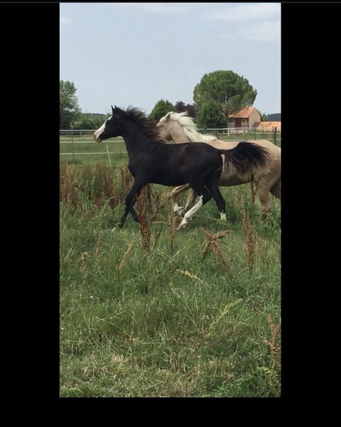 Araberfohlen mit 24,93 % Araber-Anteil, sehr typvoll Rappe, er ist Träger des Sabino-Gens Orfeo ist ein kleiner, intelligenter Jungspund mit einem liebenswerten Charakter. mit einem ausgeprägten Typ und hervorragenden Gängen. Er ist gesellig, lebt in einer Herde und kennt die Grundlagen der Ausbildung (Box, Transporter, Hufschmied, usw.).