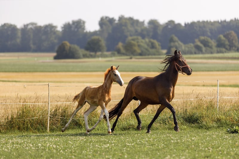 Yamila wurde im Mai diesen Jahres als zweites Fohlen unserer selbst gezogenen Araber Berber Stute Qashkayah geboren. Ihre Mutter ist sowohl Prämien als auch Leistungsstute im VFZB. Auch ihr Vater lebt bei uns und ist im Hengstbuch des VFZB eingetragen, er wird im Moment auf die Hengstleistungsprüfung 2026 vorbereitet und klassisch barock ausgebildet. Yamila hat über ihre Großmutter mütterlicherseits, die ebenfalls bei uns lebt, 25% AV Anteil. Sie ist berbertypisch sehr menschbezogen, ausgeglichen, neugierig und lernt gerne und schnell. In unserer kleinen altersgemischten Berberherde kommt sie gut zurecht, ist anderen Pferden gegenüber aufgeschlossen und freundlich, auch andere Tiere hat sie hier schon neugierig kennen gelernt. Gerne geht sie als Handpferd mit ihrer Mutter auf kleine Ausritte und lernt schon ihre Umwelt kennen. Gerne können Sie mit uns einen Termin zum Kennenlernen mit uns vereinbaren.